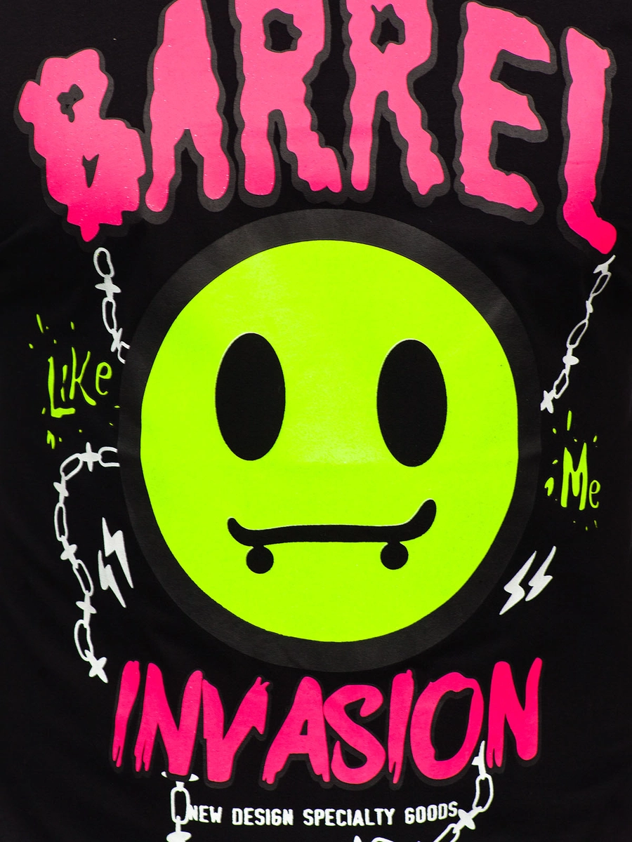 Fantastisk svart T-shirt med tryck för män HS7233 från Bolf-kollektionen. Den är gjord av ett mjukt och behagligt material. Inblandningen av elastan i kompositionen gör den tillräckligt elastisk. Den ger komfort och rörelsefrihet när den bärs. Det är bra för vardagsbruk och träning. Det färgglada trycket ger en fashionabel, ungdomlig karaktär och kommer säkerligen att få dig att sticka ut i mängden. T-shirten kommer att vara perfekt i kombination med en bomberjacka och jeans.