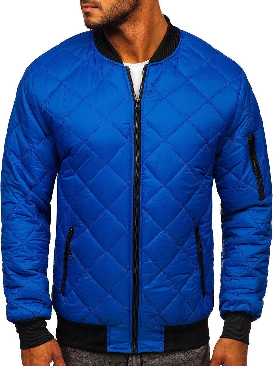 Klassisk blå herr lättviktsjacka quiltad bomber MY-01A från Bolf-kollektionen. Den är tillverkad av ett material av hög kvalitet och kommer att vara ett pålitligt plagg många år framöver. Den passar in i de senaste trenderna och är väldigt mjuk. Romb-quilting. Den har en låg ståkrage och dragkedja. Den har elastiska muddar vid ärm, hals och nertill. Jackan har två utvändiga fickor med dragkedja. Det finns ytterligare en ficka på vänster ärm. Den har en enkel design. Den här modellen finns i flera olika färger. Den är designad för dig som uppskattar bekvämlighet och stil. En skön och bra passform. De är ett absolut måste ha. Den klassiska stilen gör att den passar bra till vardags. Passar höst eller vinter. Använd tillsammans med jeans och en långärmad top, ett par joggers och en T-shirt, eller varför inte med chinos och en skjorta. Passar också bra med en huvtröja.