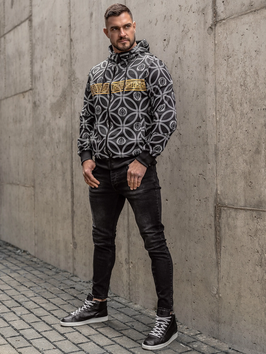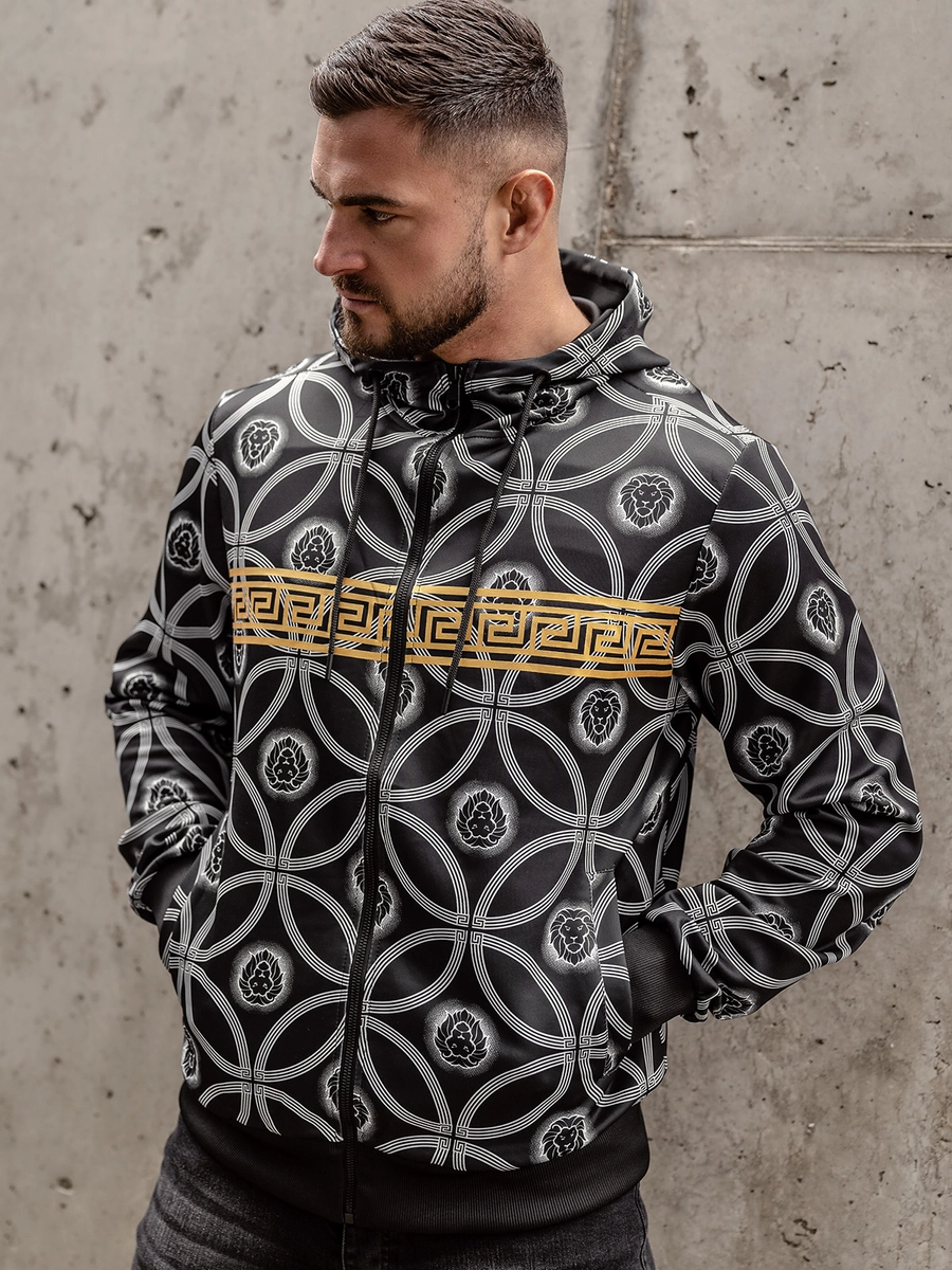 Fantastisk svart luvtröja med dragkedja för män 27B8123A från Bolf-kollektionen. En sweatshirt med klassiskt snitt med justerbar huva kommer att vara perfekt för fans av en sportig stil. Ett designertryck ger den en unik fashionabel karaktär. Nertill och vid ärmsluten finns en mudd vilket gör att den är varm och skyddar bra mot kyla. Tröjan har två sidfickor. Den är gjord av ett mycket behagligt material som garanterar komfort även under den mest krävande träningen. Letar du efter en sportoutfit? Matcha sweatshirten med träningsbyxor, en T-shirt och en väst!
