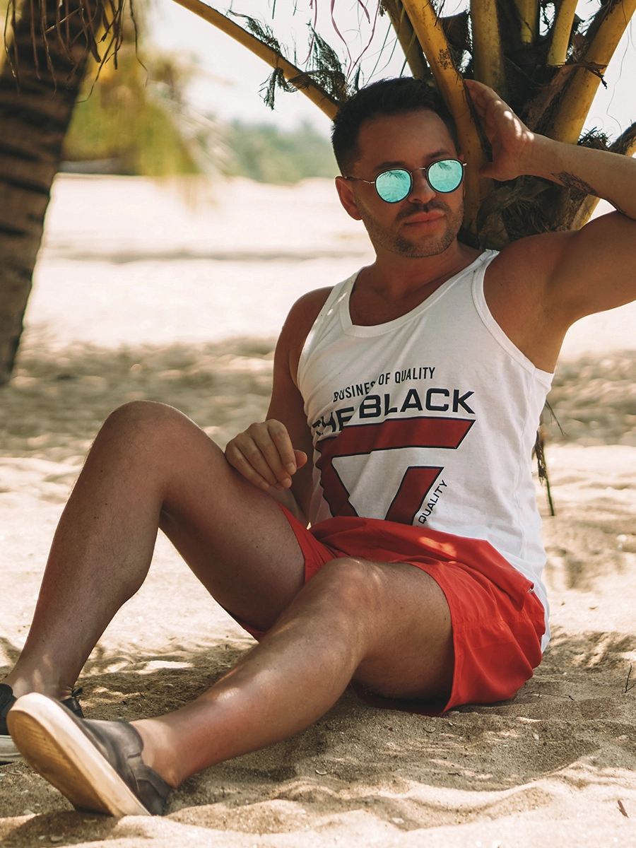 Unikt boxerlinne med tryck för män 14833A från Bolf-kollektionen. Tillverkad av 100% bomull, den är mjuk att ta på och flexibel. Dess lösa skärning säkerställer rörelsefrihet och komfort under fysisk aktivitet. Trycket placerat på framsidan av linne ger unikhet och karaktär. Den kommer att passa perfekt med både vardags- och sportstiliseringar. Att kombinera det med sweatpants kommer att vara bra för träning, och med shorts kommer det att vara perfekt för stranden.