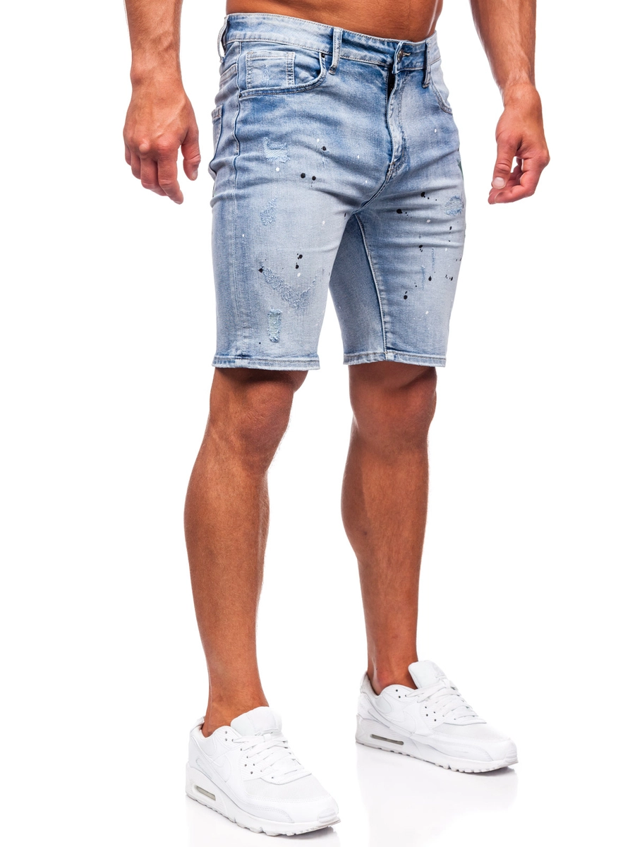 Fantastiska himmelsblå jeansshorts för män MP0262BC från Bolf-kollektionen. Oavsett om du är på stranden, under en semesterresa eller en promenad runt staden, kommer dessa shorts att hålla dig bekväm och bekväm. Tillverkade av högkvalitativ denim kombinerar de komfort och hållbarhet med ett moderiktigt utseende. De har rymliga fickor fram och bak, vilket gör dem mycket funktionella. Skuggning och skavsår på benen ger dem en moderiktig karaktär. De kommer att matcha en T-shirt och en tröja.