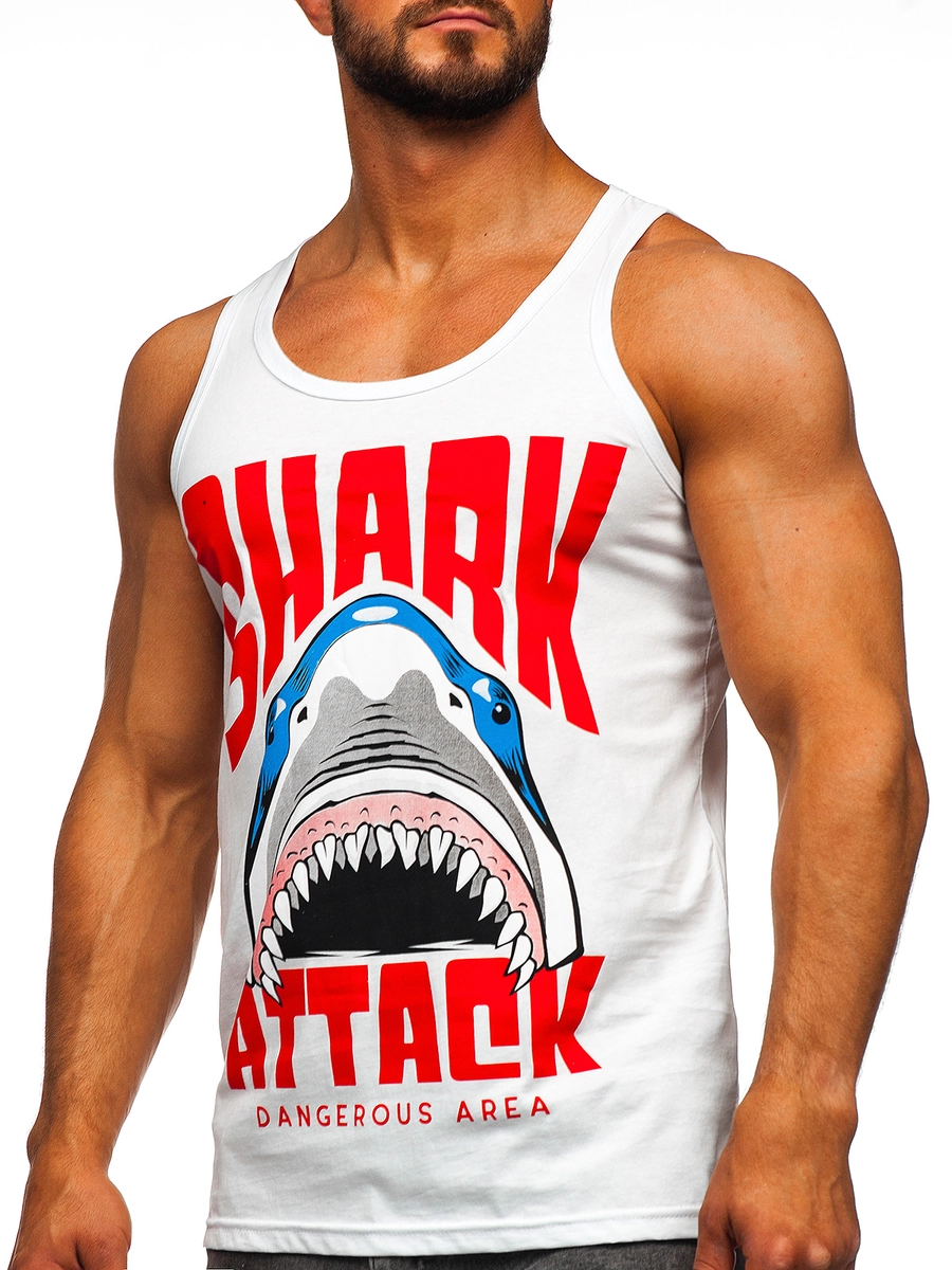 Iögonfallande vit boxerlinne för män 143028 från Bolf-kollektionen. Denna T-shirt kommer att liva upp din garderob och tillföra fräschör till dina sommaroutfits. Det vanliga snittet garanterar rörelsefrihet och framhäver samtidigt den maskulina figuren. Tillverkad av högkvalitativ bomull, ger den komfort och bekvämlighet. Det unika trycket ger karaktär och får dig att sticka ut i mängden. Det är ett idealiskt förslag för män som värdesätter individualitet och originalitet i sina kläder. Det kommer att se bra ut med denimshorts.