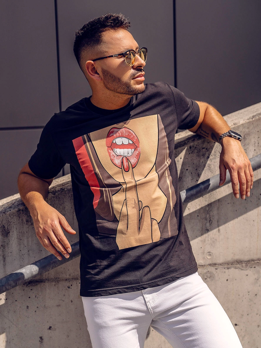 Feedback från kunder Herr Bomulls T-shirt med tryck Svart Bolf 143018A