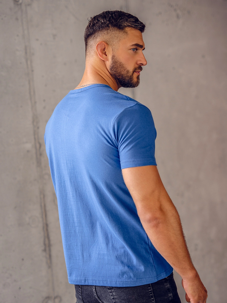 Enkel V-ringad T-shirt 192131A från Bolf-kollektionen. Original blå T-shirt Perfekt passform och understryker snyggt silhuetten. Det är tillverkat av ett mjukt material av hög kvalitet. Passar till flertalet stilar och andra klädesplagg.