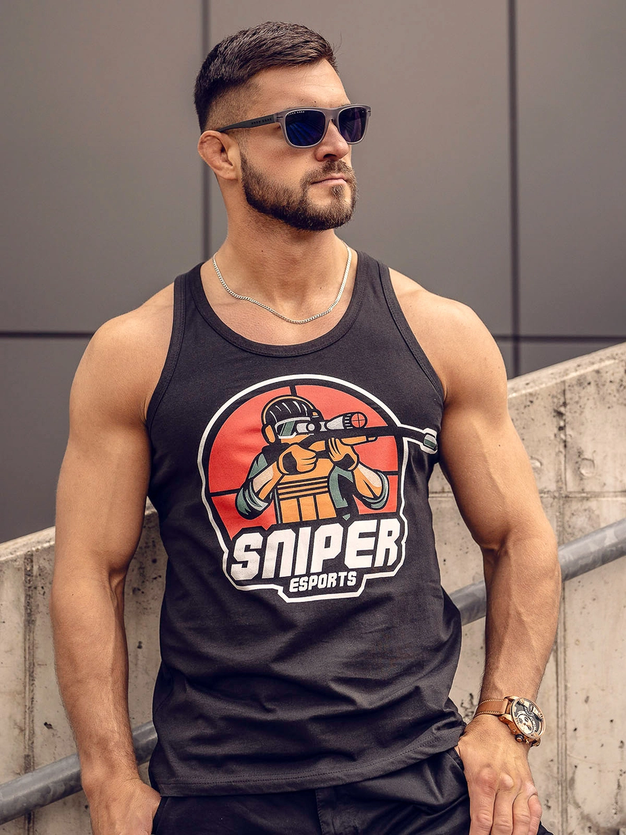 Unikt svart boxerlinne med tryck för män 143030A från Bolf-kollektionen. Den är gjord av högkvalitativ bomull, den är mjuk och behaglig att ta på. Den vanliga skärningen säkerställer komfort och bekvämlighet när du bär den, samtidigt som den framhäver figuren fantastiskt. Designermönstret på framsidan ger den en unik karaktär. Den kommer att matcha många stilar för olika tillfällen. Du kan kombinera den med en tröja och shorts för en mer sportig look, eller jeans för en avslappnad look.