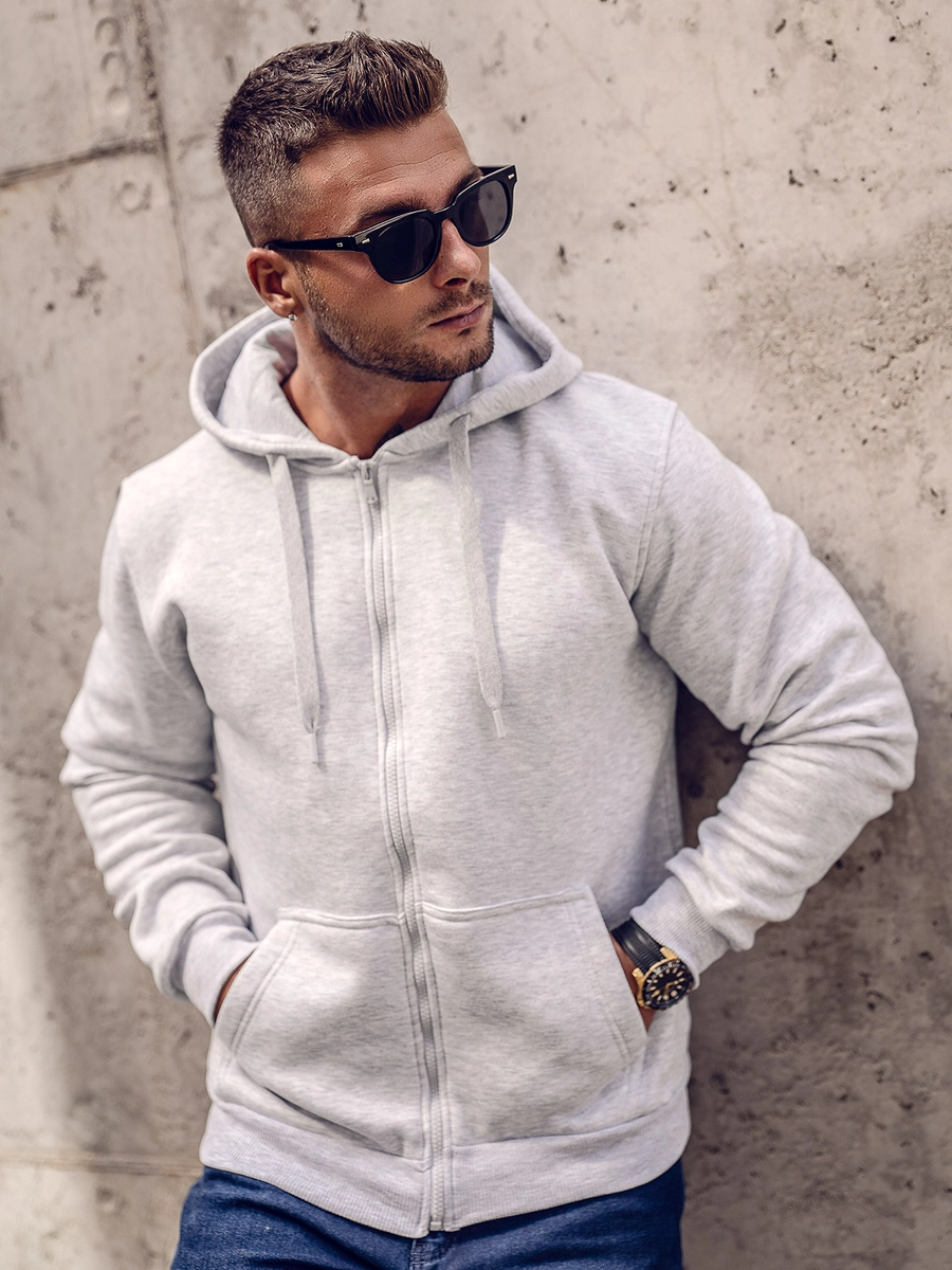 Ljusgrå herrhuvtröja med dragkedja 2008A från Bolf-kollektionen. Det är en klassisk design gjord av högkvalitativt material. Denna modell finns i flera olika färger. Den har en justerbar huva och sidfickor. Elastiska muddar på ärmar och i nederkant. Den är designad för dig som uppskattar bekvämlighet och minimalistisk stil. Den är väldigt bekväm och praktisk. Den är ett absolut, måste ha! Klassisk design som passar in till flera olika stilar. Den kommer helt säkert uppfylla alla dina förväntningar oavsett vilken färg du väljer. Den finns i flera olika fina färger. Passar bra hela året runt.