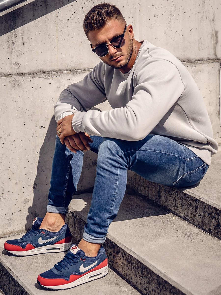 Basic grå herr sweatshirt 2001A från Bolf kollektionen. Den här modellen finns i flera olika färger. Den är designad för dig som uppskattar bekvämlighet och minimalistisk stil. Enkel, bekväm, hög kvalitet. Den är ett absolut, måste ha! Designen är rak och passar till olika stilar. Elastiska muddar nertill och på ärmarna. Den är tillverkat av ett mjukt, andningsbart material av hög kvalitet.