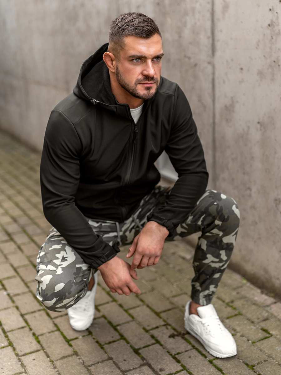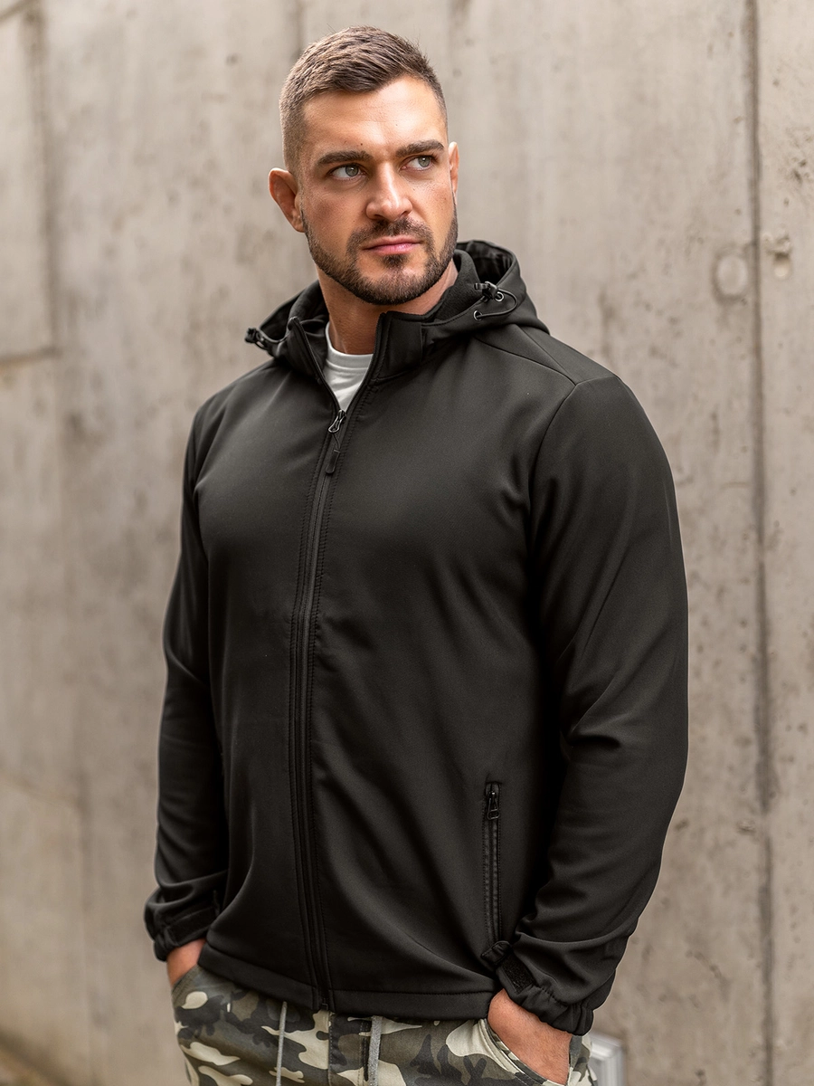 Fantastisk svart lättvikts softshelljacka för män HH017A från Bolf-kollektionen. Jackan knäpps med dragkedja, har avtagbar huva och ståkrage, vilket är väldigt praktiskt på blåsiga dagar. Produkten har fyra fickor - två ytterfickor med dragkedjor och två innerfickor i nät, som är väldigt praktiska att förvara till exempel plånbok eller dokument. Jackans ärmar har dragsko och är justerbara med kardborre, vilket ger skydd mot kyla och vind när du behöver det. Softshelljackan har ett sportigt, enkelt snitt. Jackan är perfekt för alla aktiva män, inte bara vid ren sportutövning. Den passar även bra på resor eller under en kvällspromenad. En softshell är en perfekt bas för en vardalig eller sportig outfit. Bär den med träningsbyxor. Det fungerar också utmärkt med en baströja och en T-shirt.