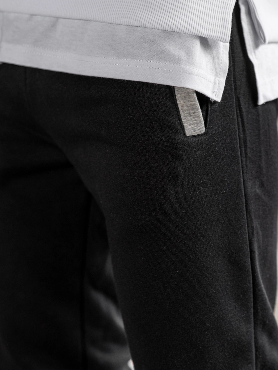 Klassiska svarta träningsbyxor för män AK13A-1 från Bolf-kollektionen. Byxorna är gjorda av mjukt material och ger oöverträffad bärkomfort. En elastisk, justerbar midja och passformade ben gör att de passar perfekt till figuren utan att begränsa rörelsen. Den svarta färgen på byxorna ger dem en elegant karaktär som passar perfekt till både avslappnade och mer formella stilar. Du kan para dem med en skjorta och sneakers för en avslappnad look.