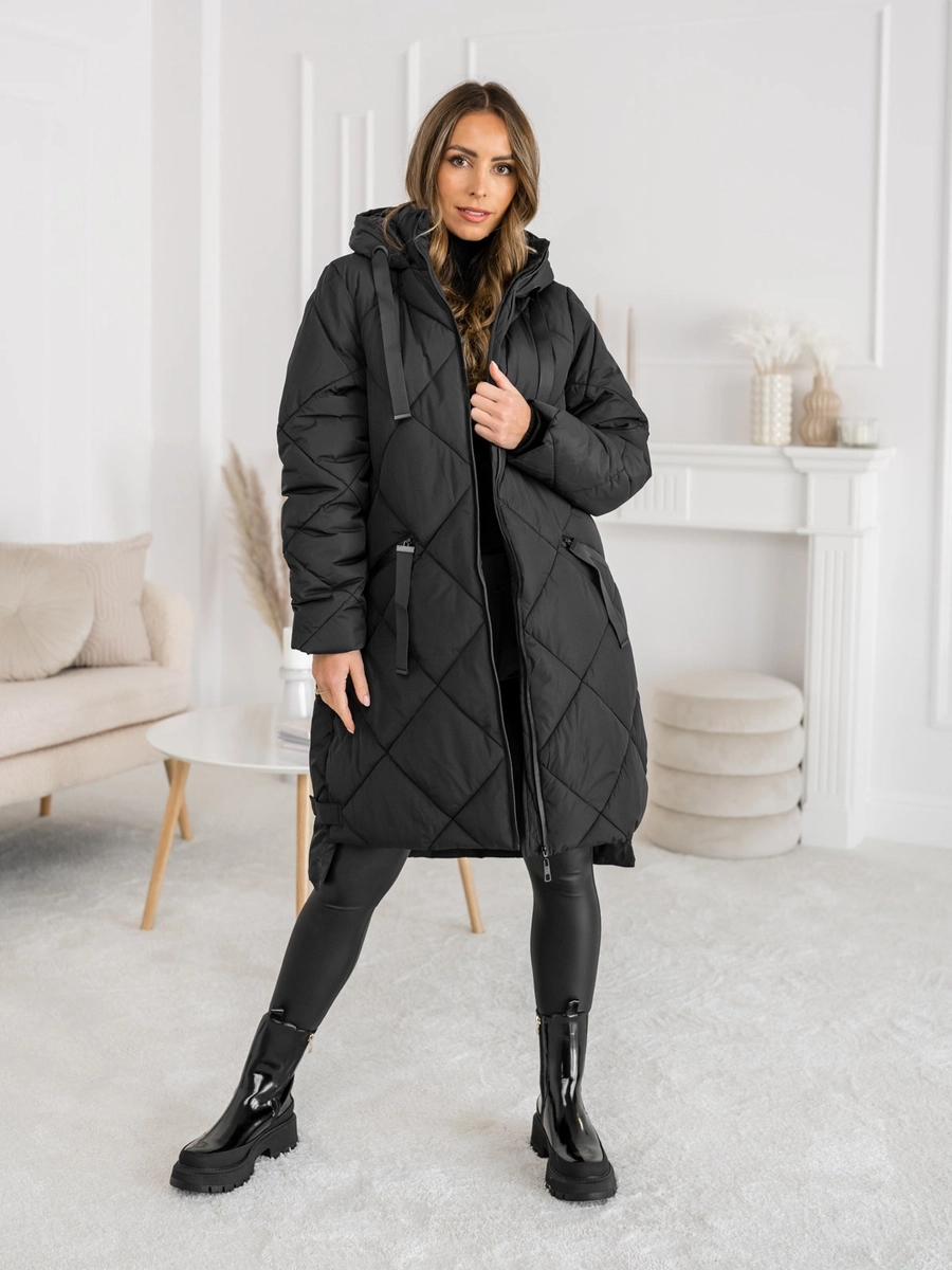 Feedback från kunder Dam Lång Quiltad Vinterjacka med huva Svart Bolf 5M3168