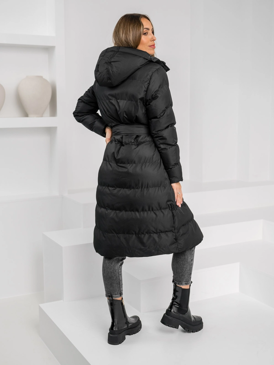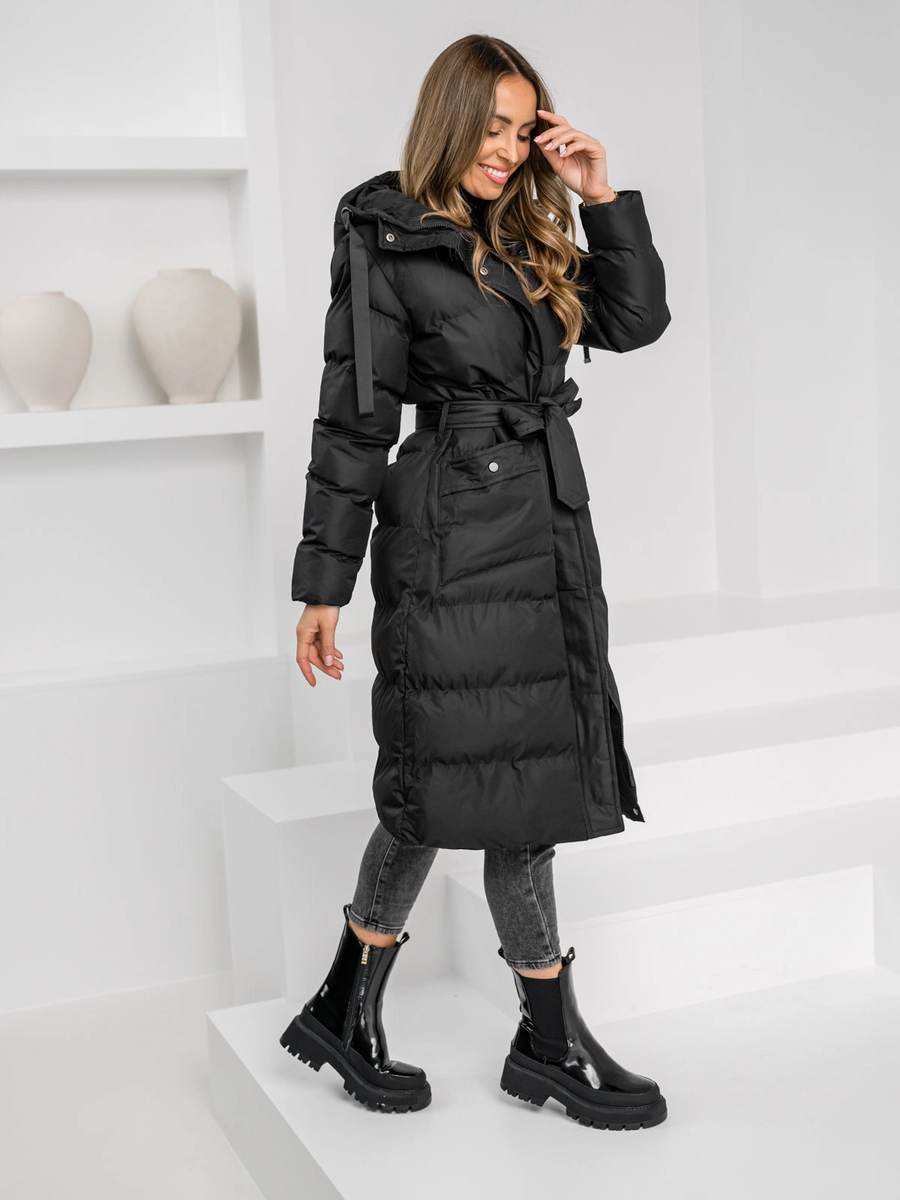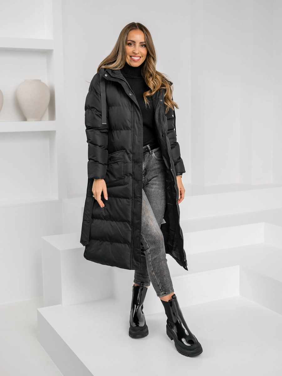Feedback från kunder Dam Lång Quiltad Vinterjacka med huva Svart Bolf 5M3178