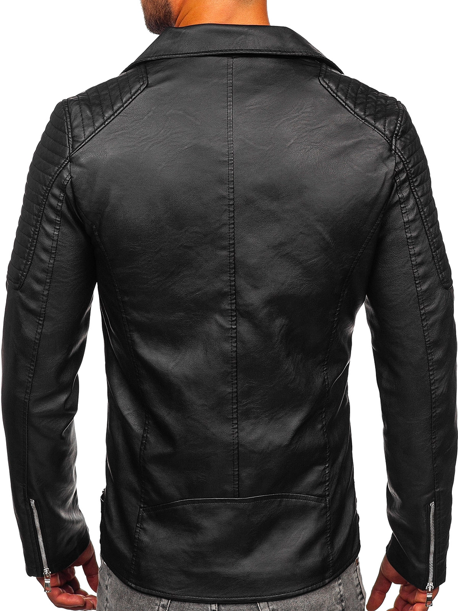 Klassisk svart bikerjacka för män 11Z8026 från Bolf-kollektionen. Den är gjord av högkvalitativa material, vilket säkerställer inte bara ett perfekt utseende, utan också hållbarhet och komfort att bära. Designen av denna jacka är kvintessensen av modern herrstil. Den klassiska bikerjackan har kompletterats med noggranna detaljer som framhäver dess unika karaktär. Den kan enkelt kombineras med olika stilar - från avslappnad till mer elegant. Den kommer att fungera perfekt med jeans och en skjorta eller en tröja.