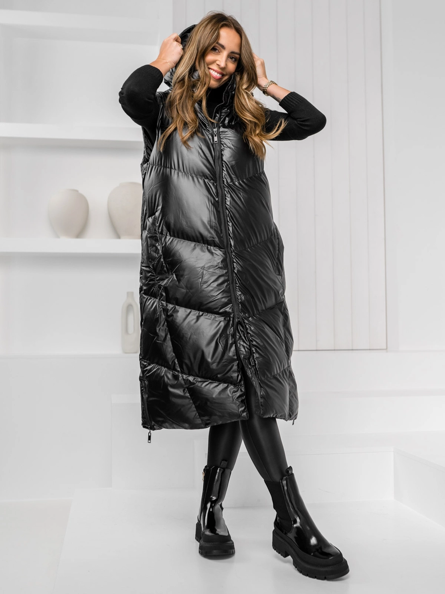 Feedback från kunder Dam Lång Quiltad Väst Svart Bolf 5M3183