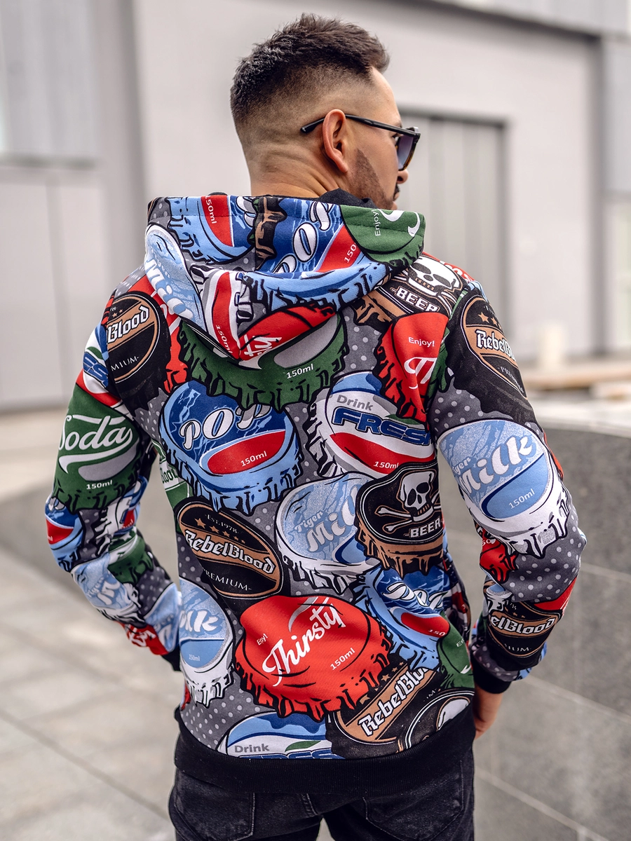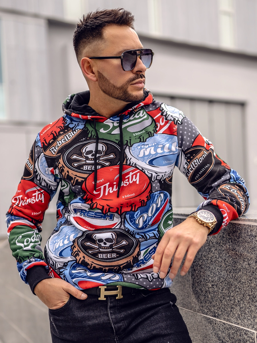 Perfekt flerfärgad luvtröja för män 141031A från Bolf-kollektionen. Den här tröjan har ett dekorativt, flerfärgat tryck över hela tyget vilket gör att den får en unik karaktär. Den har en praktisk mudd nertill och på ärmsluten. Den är menad till de som gillar en aktiv livsstil. Den fungerar utmärkt under ett krävande träningspass på gymmet eller på löpturen. Tröjans material är ett som gör att du känner dig väldigt bekväm i den. Skapa din egna sportiga stil med ett par sweatpants och en vindjacka. Tröjans mångsidighet gör att du kan skapa en stil som du kan ha när du träffar dina vänner i stan eller om du åker i väg på en weekend. Kombinera tröjan med ett par moderiktiga jeans och en jeansjacka för en tidlös stil.