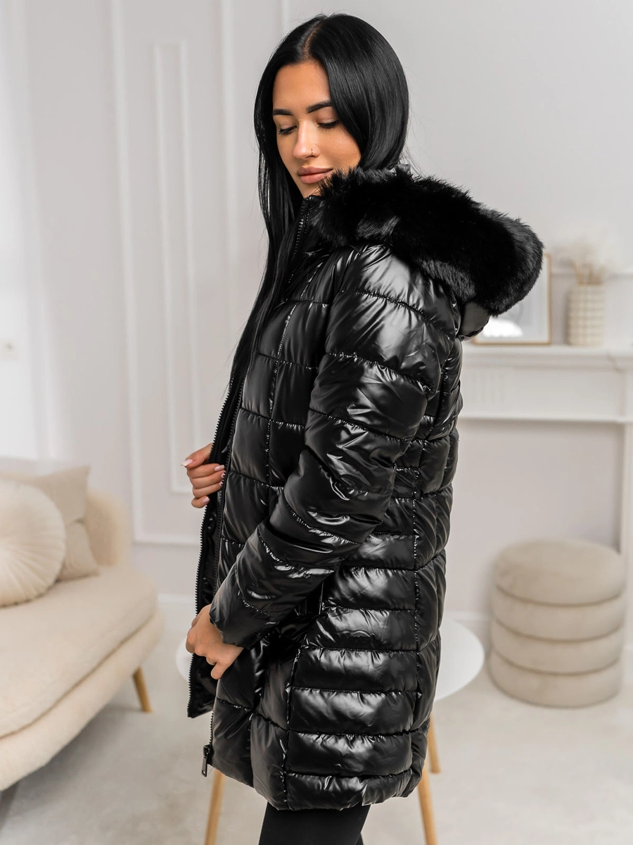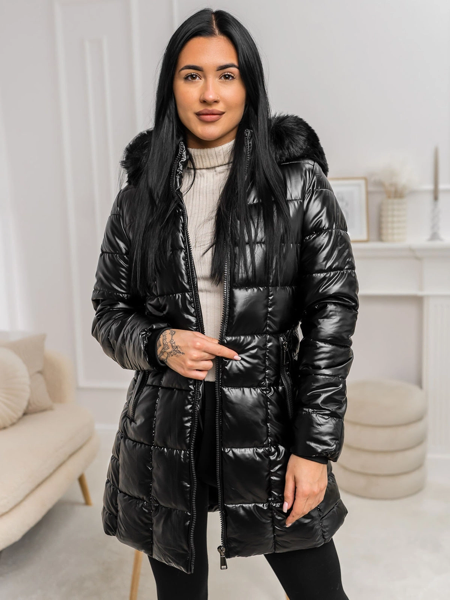 Feedback från kunder Dam Lång Quiltad Vinterjacka med huva Svart Bolf 16M9120