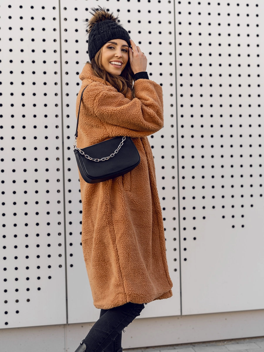 Vacker kamel dam varm longline vinterkappa AN105B från Bolf-kollektionen. Kappan är fodrad och stängs med knappar. Den har två ytterfickor utan stängning där du kan förvara din telefon, plånbok, nycklar eller andra nödvändiga saker. Karakteristiska drag är att den har enkla snitt, är av oversize-modell och har snygga slag på kragen. Den är tillverkad av 100% polyester, vilket gör den väldigt bekväm och flexibel till olika kroppsformer. En vinterkappa passar utmärkt för alla tillfällen under lite kallare dagar. Den passar perfekt med en lång klänning eller jeans och en klassisk tröja.