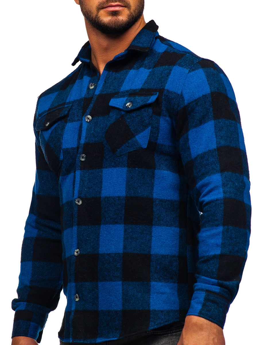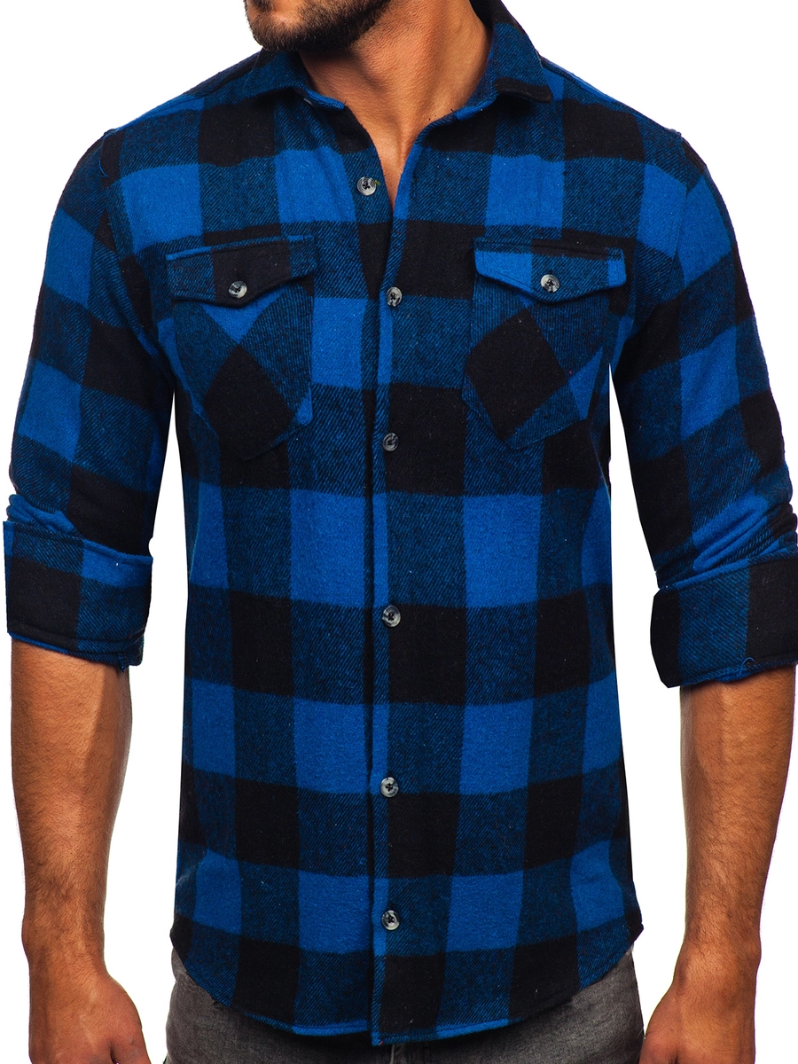 Iögonfallande marinblå långärmad flanellskjorta 20723 från Bolfs kollektion. Skjortan har två snygga fickor som stängs med knapp. Skjortan är rundad nertill. Den här produkten har manschetter som också har knapp. Den här typen av skjorta passar perfekt till flera olika tillfällen. Du kan klä upp dig för en date, en shoppingtur eller för träffen med vännerna. Den är användbar och kan lätt kombineras med många andra kläder. Den är gjord av 80% bomull och 20% polyester, vilket gör den behaglig att ta på och flexibel. Passar jättebra med jeans eller ett par joggare.