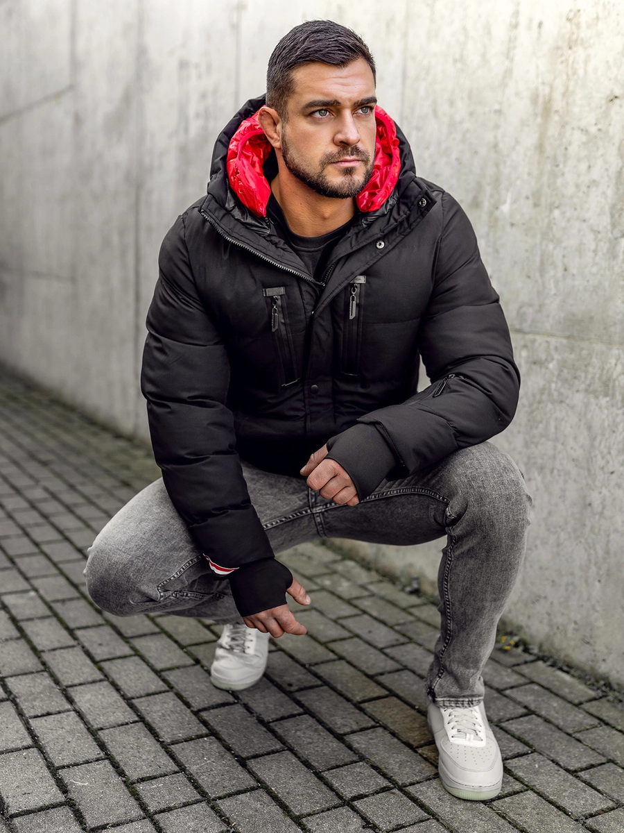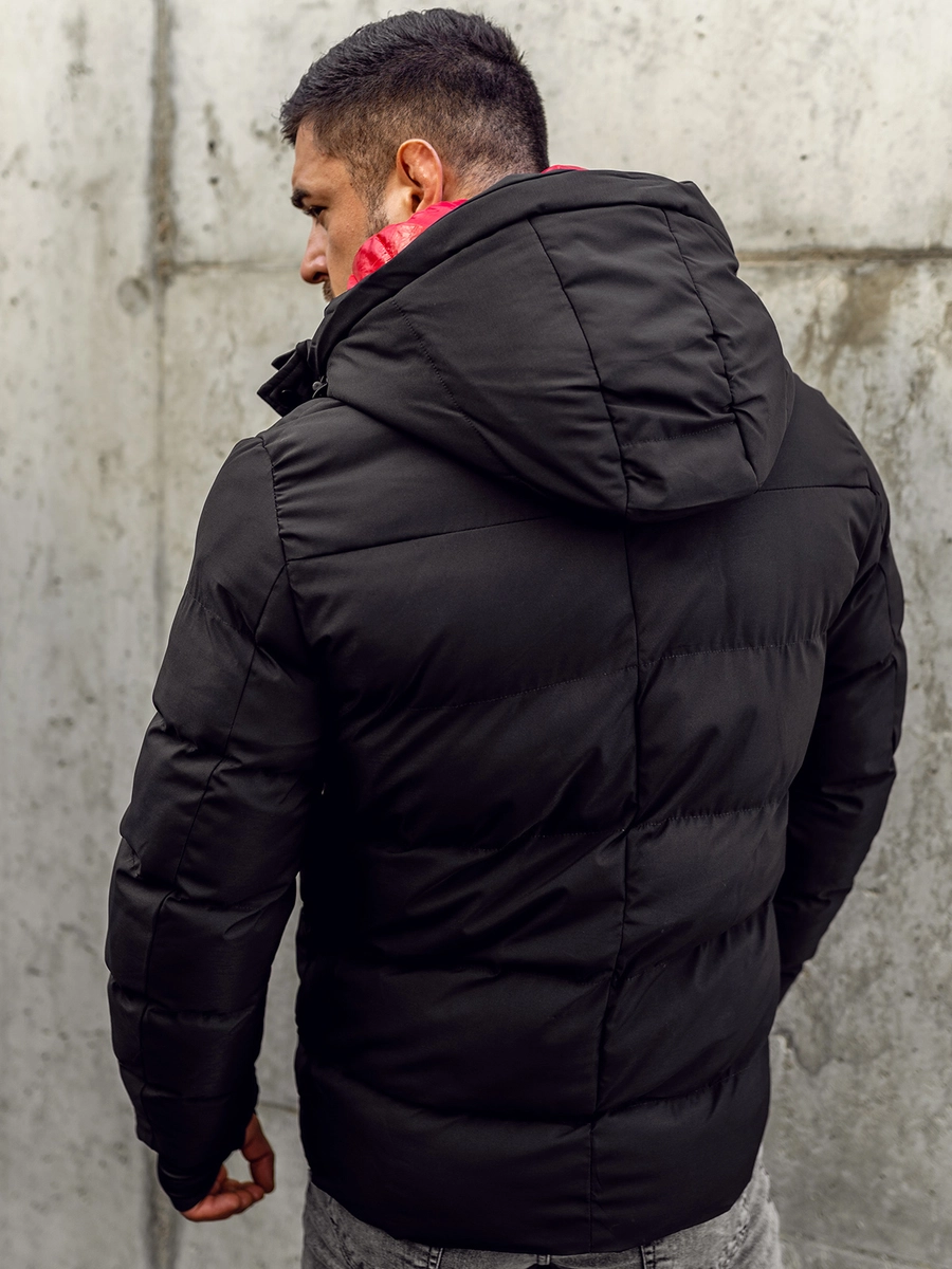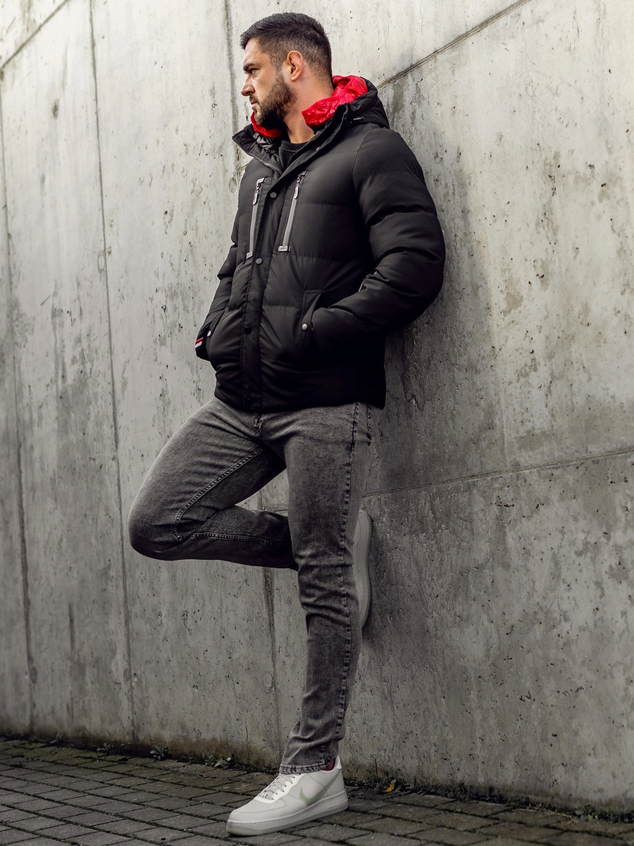 Klassisk quiltad svart herr vinterjacka 5M771A från Bolfs kollektion. Varm vinterjacka med justerbar huva med avtagbart innerfoder. Den finns i tre varianter. Jacka knäpps med dragkedja och tryckknappar. Den har bröstfickor med dragkedjor och sidfickor med tryckknapp i vilka du säkert kan gömma din telefon, plånbok eller handskar. Dessutom finns en liten ficka med dragkedja på ärmen och en ficka utan fäste inuti. En quiltad jacka kommer att vara perfekt för vardagsstyling. Vill du sticka ut? Matcha din quiltade jacka med trendiga jeans och en tröja med ett designertryck!