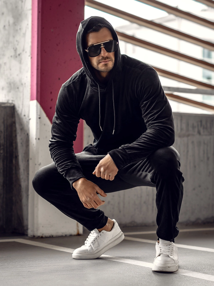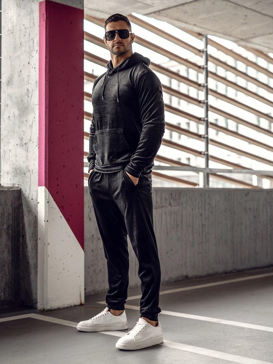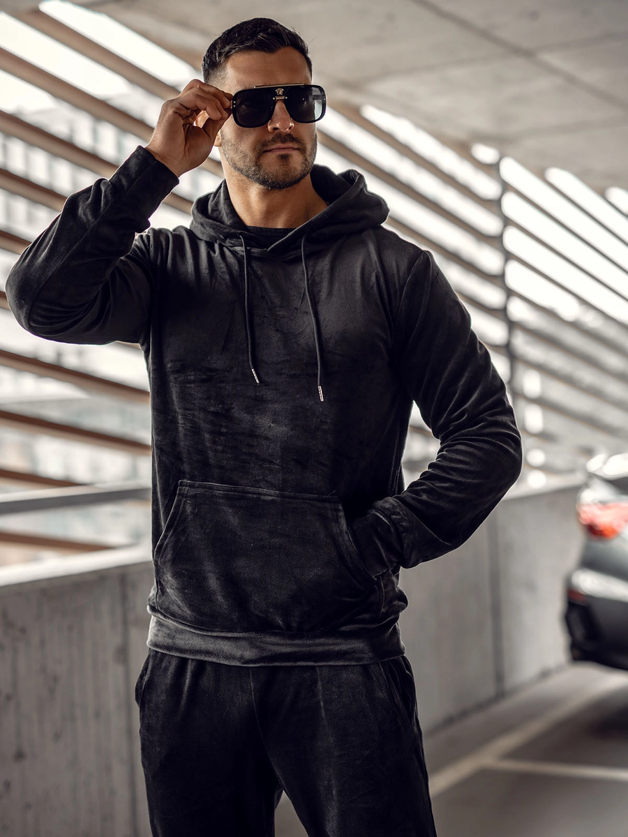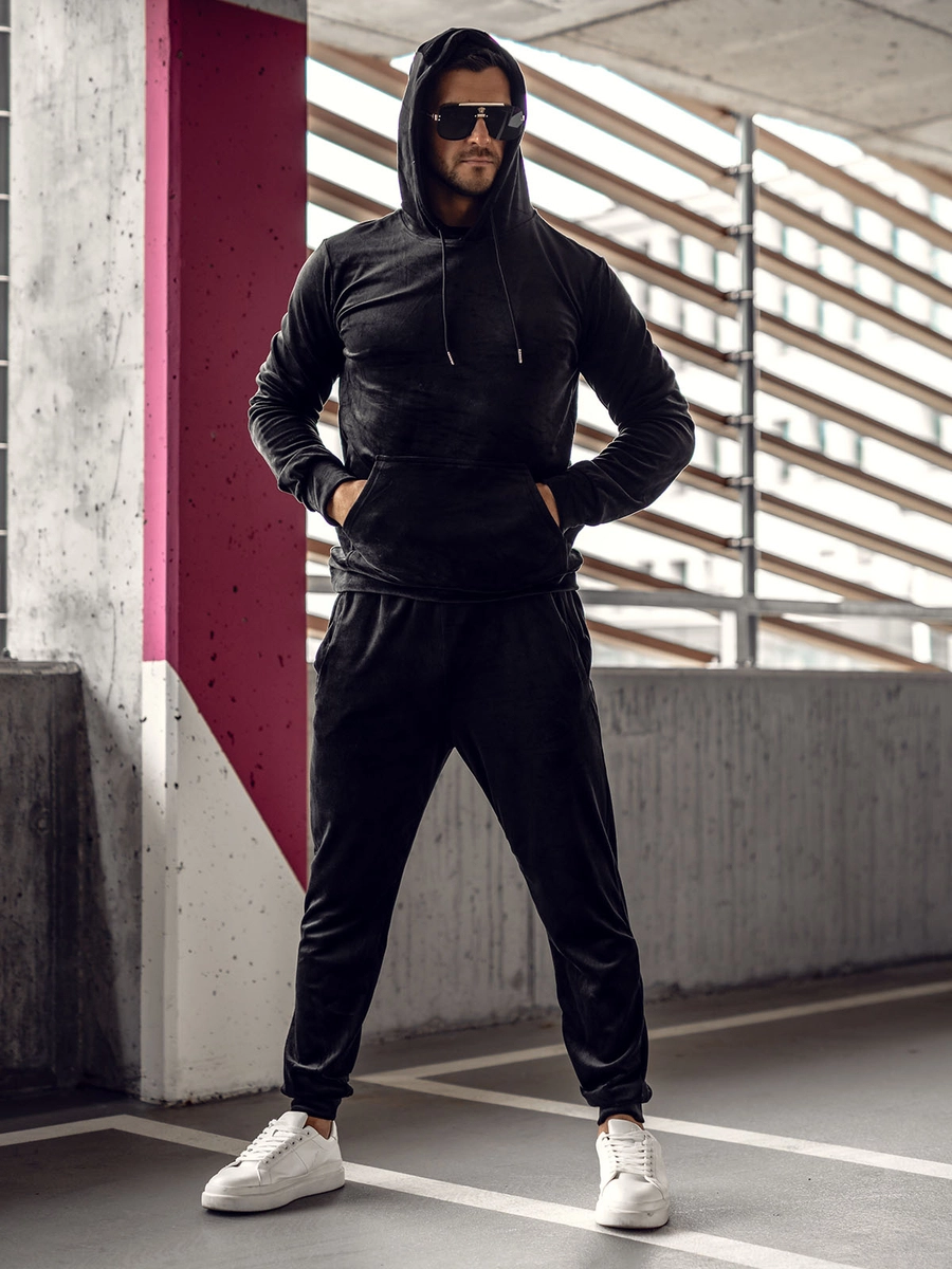 Feedback från kunder Herr Velour Träningsoverall med huva Svart Bolf 8C1171A