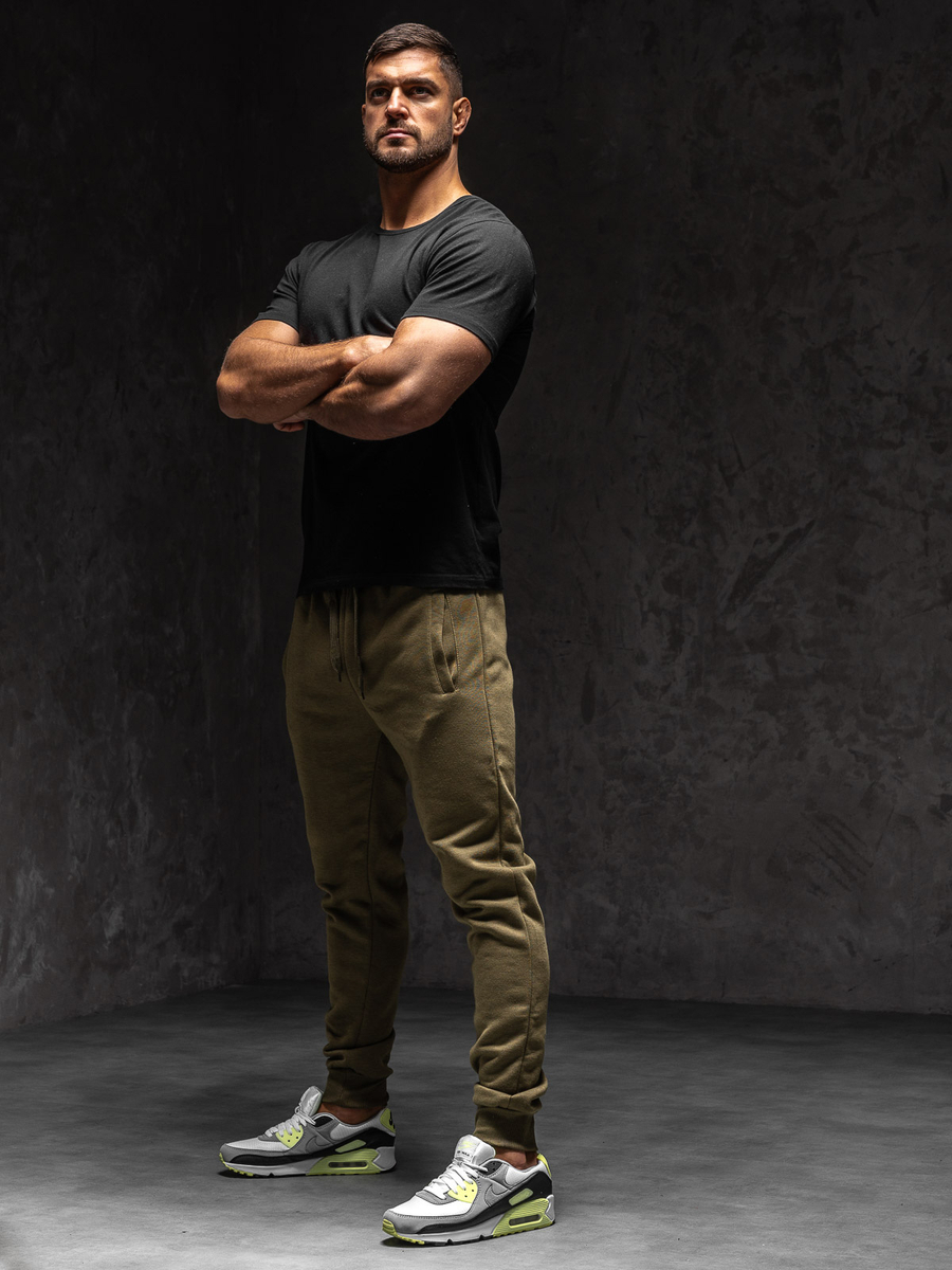 Coola kakifärgade herrsweatpants XW01-C. Dessa byxor har två sidofickor. Sportiga sweatpants i solida färger. Skönt mjukt material och bra passform. Dessa sweatpants passar vardagliga och sportiga stilar. Passar bra ihop med en sweatshirt, T-shirt eller en longsleeve.