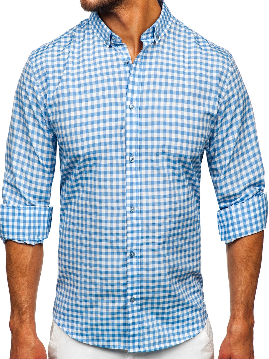 Feedback från kunder Herr Rutig Långärmad Vichy Skjorta Blå Bolf 22747