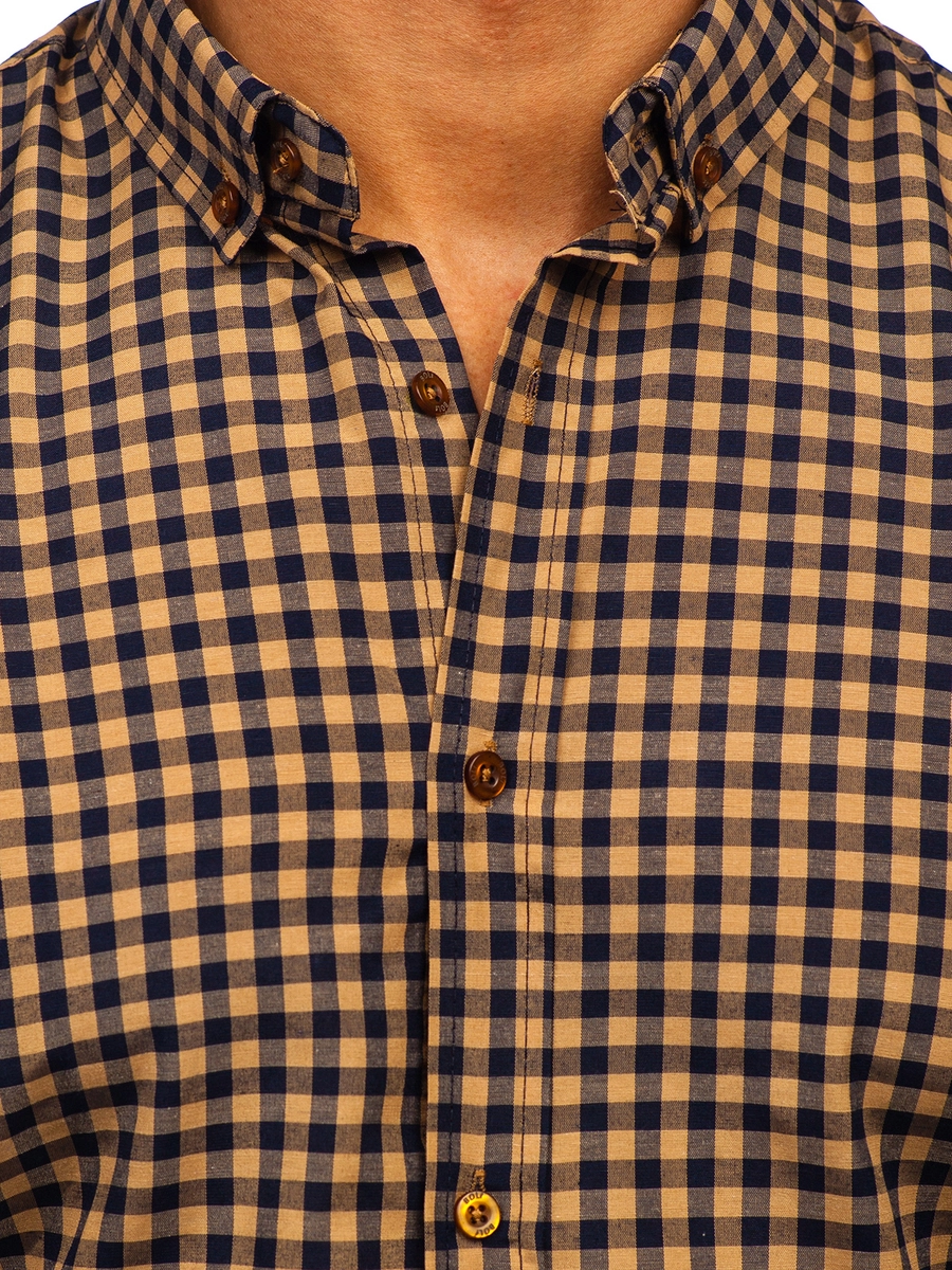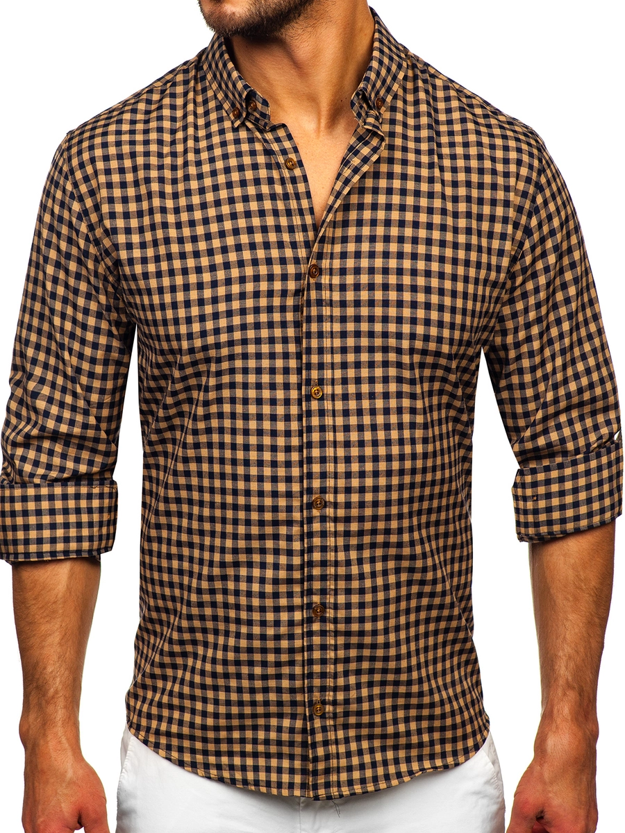 Feedback från kunder Herr Rutig Långärmad Vichy Skjorta Brun Bolf 22747