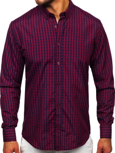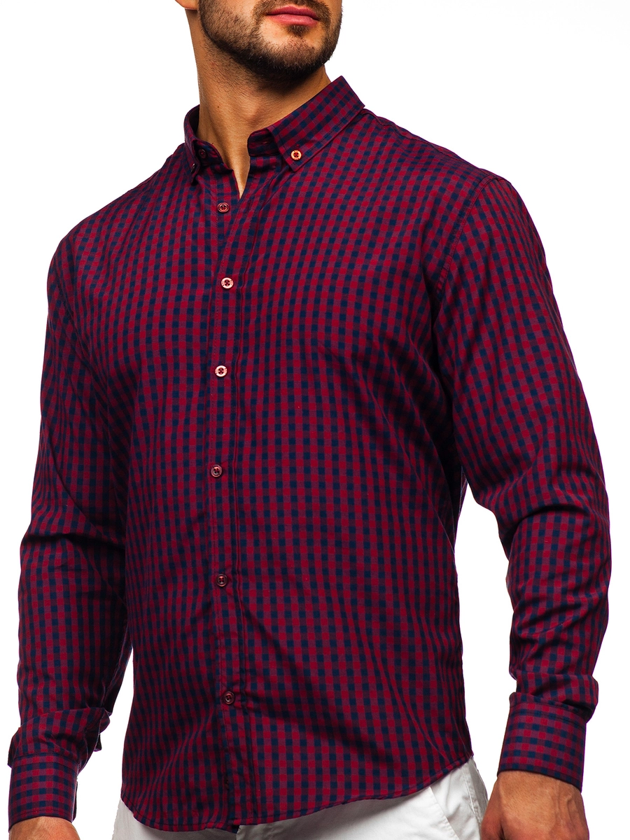 Feedback från kunder Herr Rutig Långärmad Vichy Skjorta Vinröd Bolf 22747