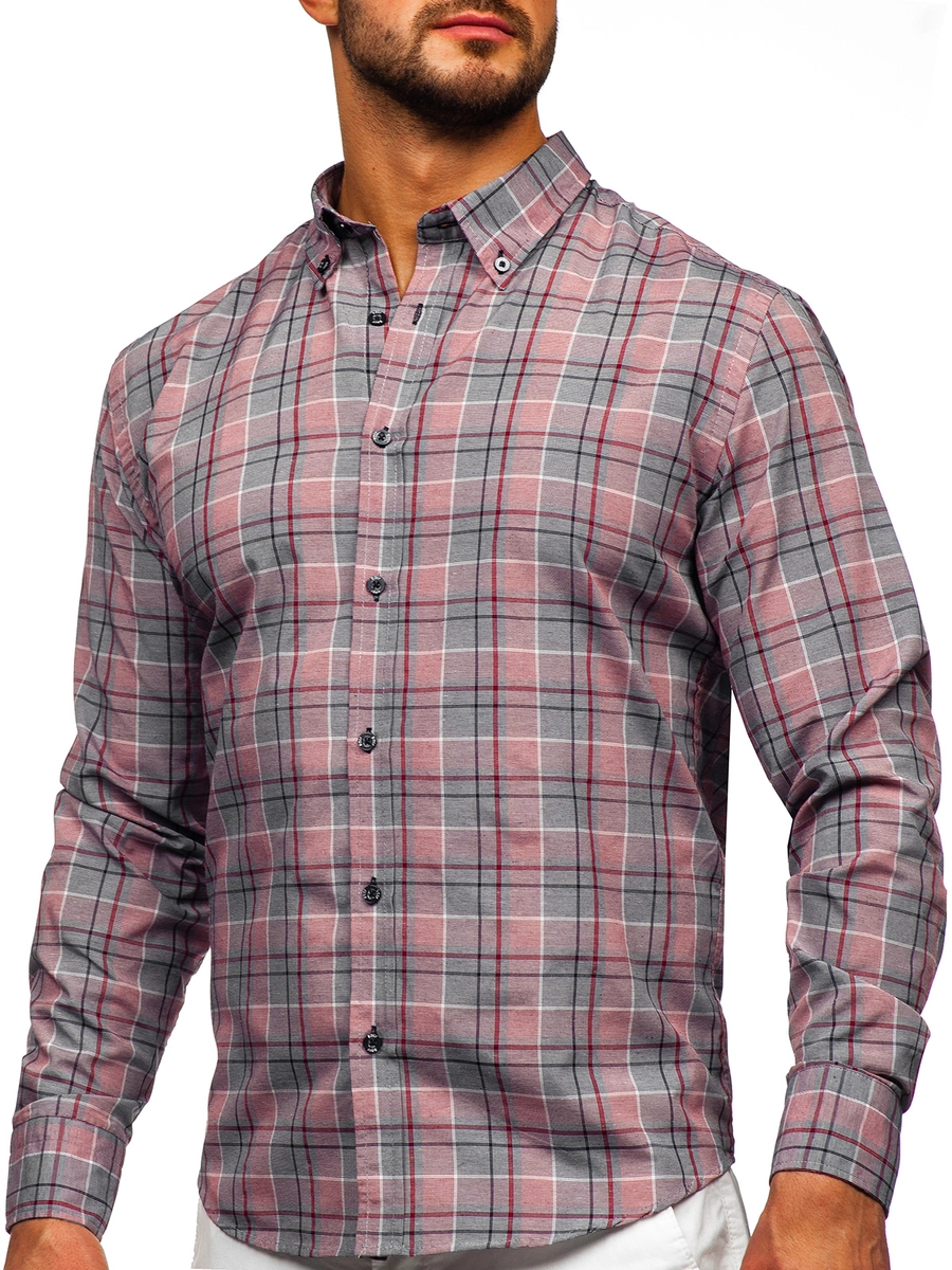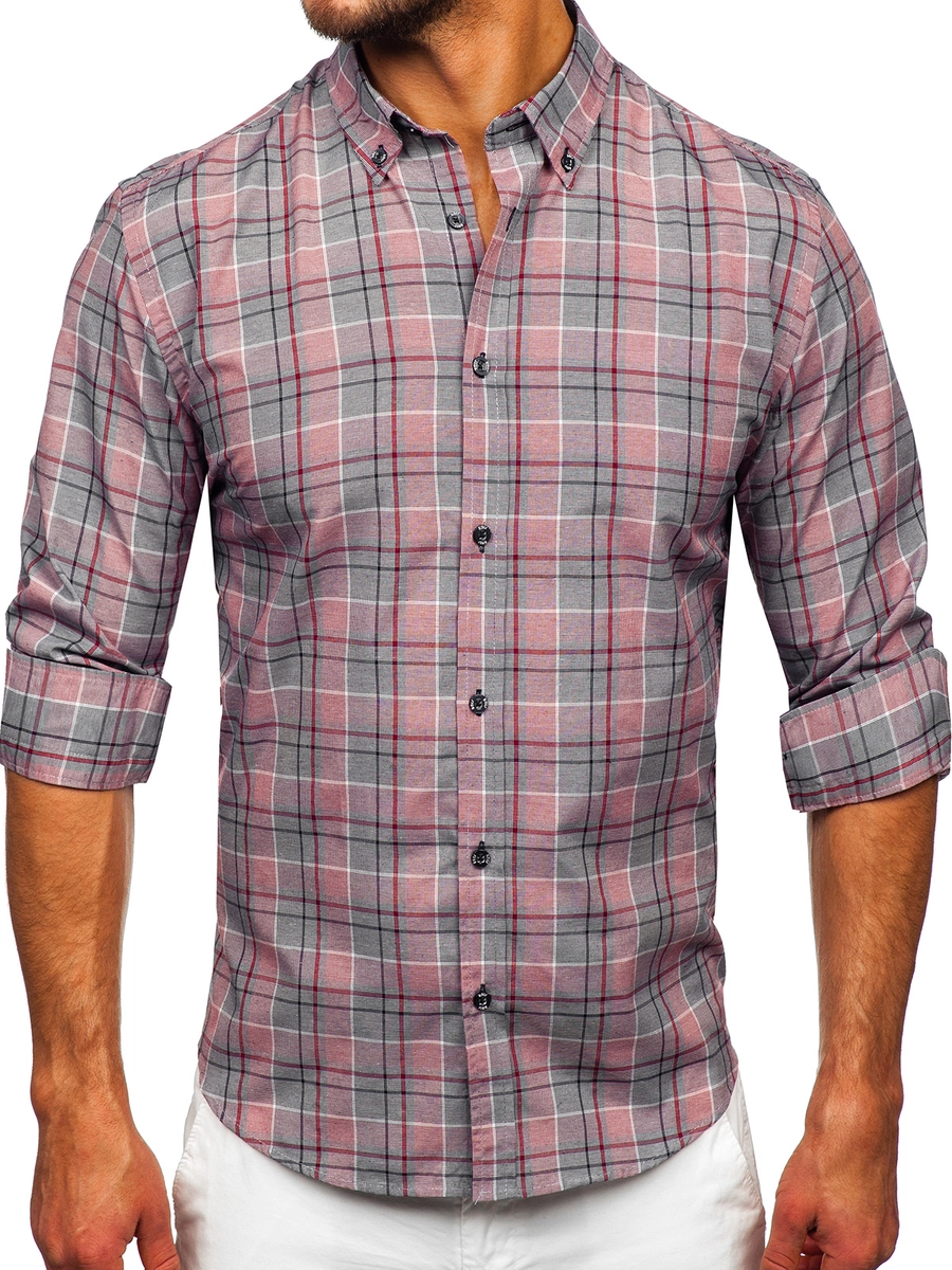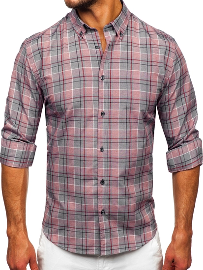 Feedback från kunder Herr Rutig Långärmad Skjorta Röd Bolf 22748