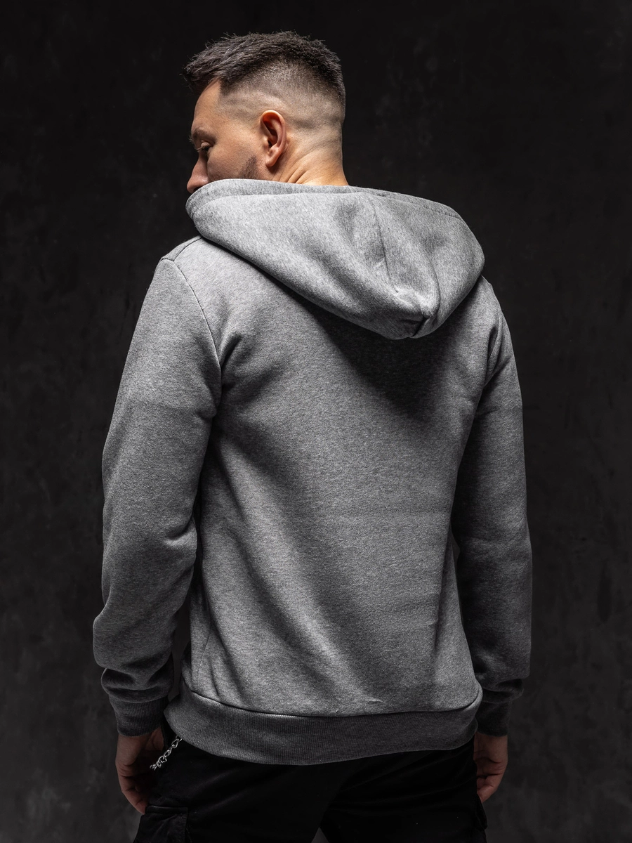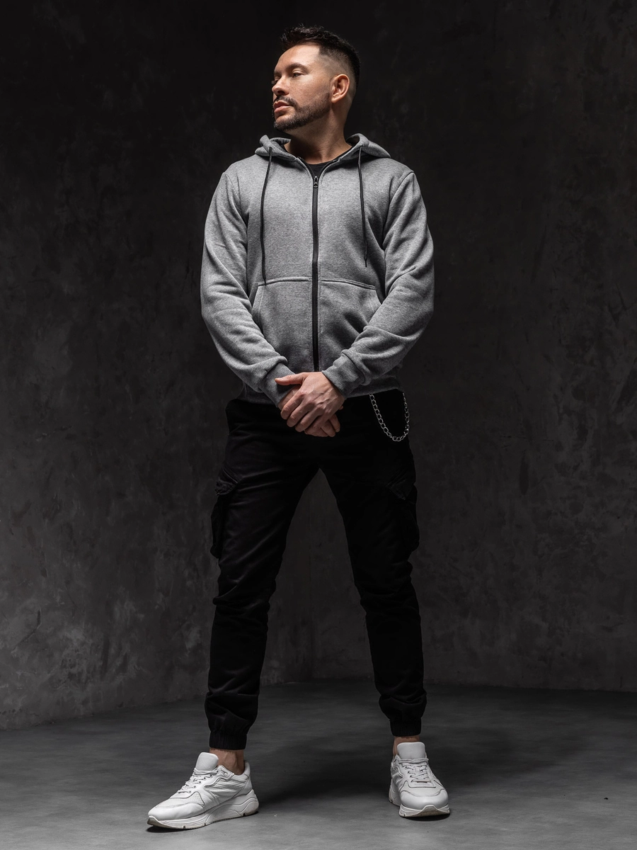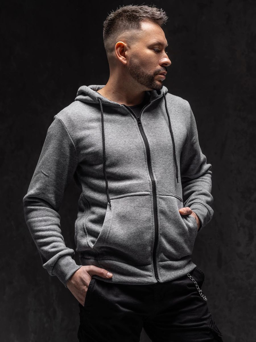 Fantastisk mörkgrå herrhuvtröja med dragkedja HW2787A1 från Bolf-kollektionen. Tröjan stängs med en dragkedja, har en ståkrage och en huva. Tack vare muddarna på ärmarna anpassar sig tröjan perfekt efter kroppen. Två sidofickor ger en praktisk karaktär. En produkt av högsta kvalitet, 65% bomull och 35% polyester, som gör att du känner dig väldigt bekväm i den. Den passar utmärkt ihop med sweatpants för att skapa en sportig stil. Kombinera med en T-shirt, joggers och en skinnjack för ett tidlöst utseende.