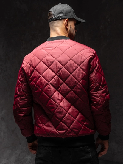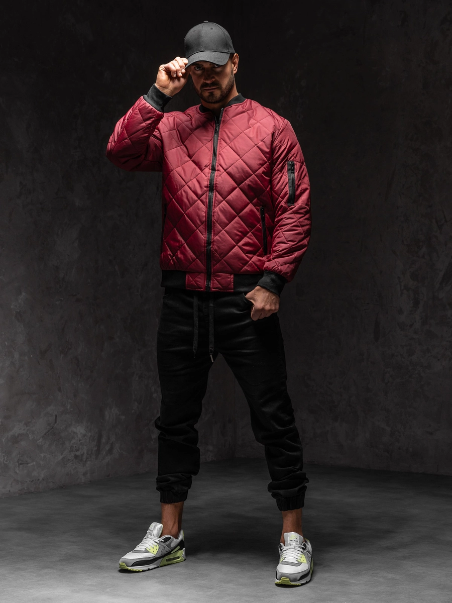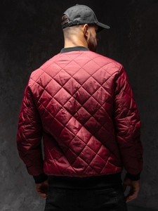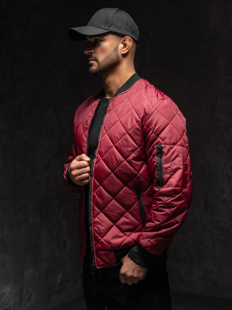 Klassisk röd herr lättviktad quiltad bomberjacka MY-01A1 från Bolf-kollektionen. Den är tillverkad av ett material av hög kvalitet och kommer att vara ett pålitligt plagg många år framöver. Den passar in i de senaste trenderna och är väldigt mjuk. Romb-quilting. Den har en låg ståkrage och dragkedja. Den har elastiska muddar vid ärm, hals och nertill. Jackan har två utvändiga fickor med dragkedja. Det finns ytterligare en ficka på vänster ärm.