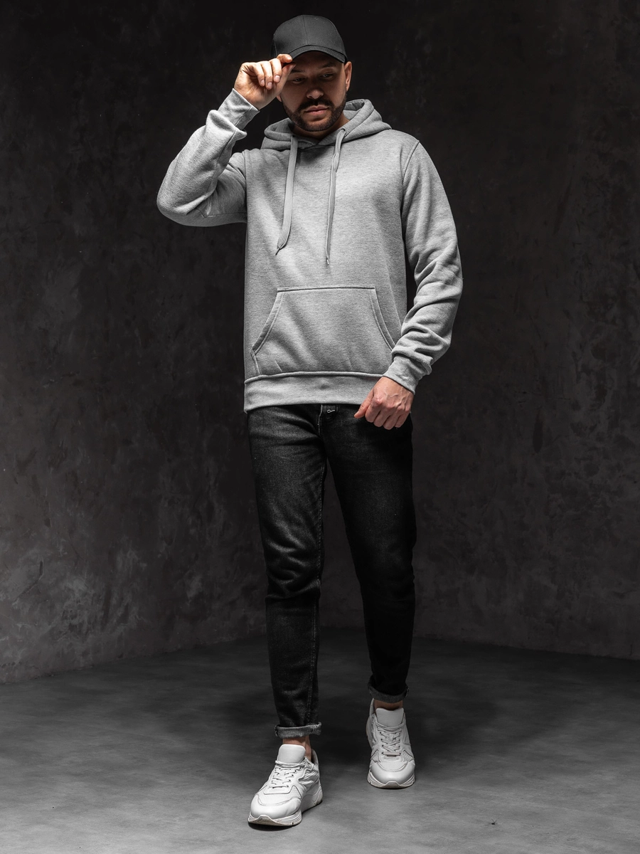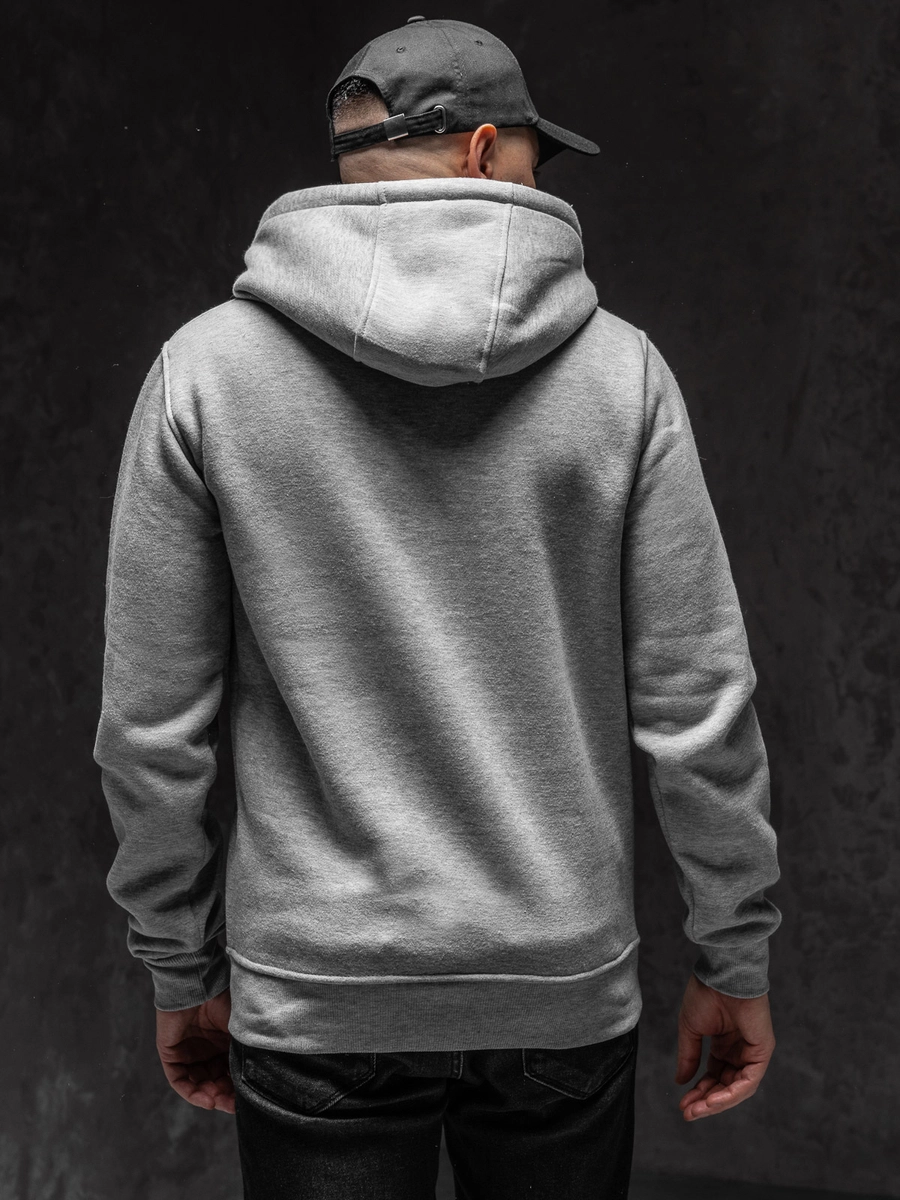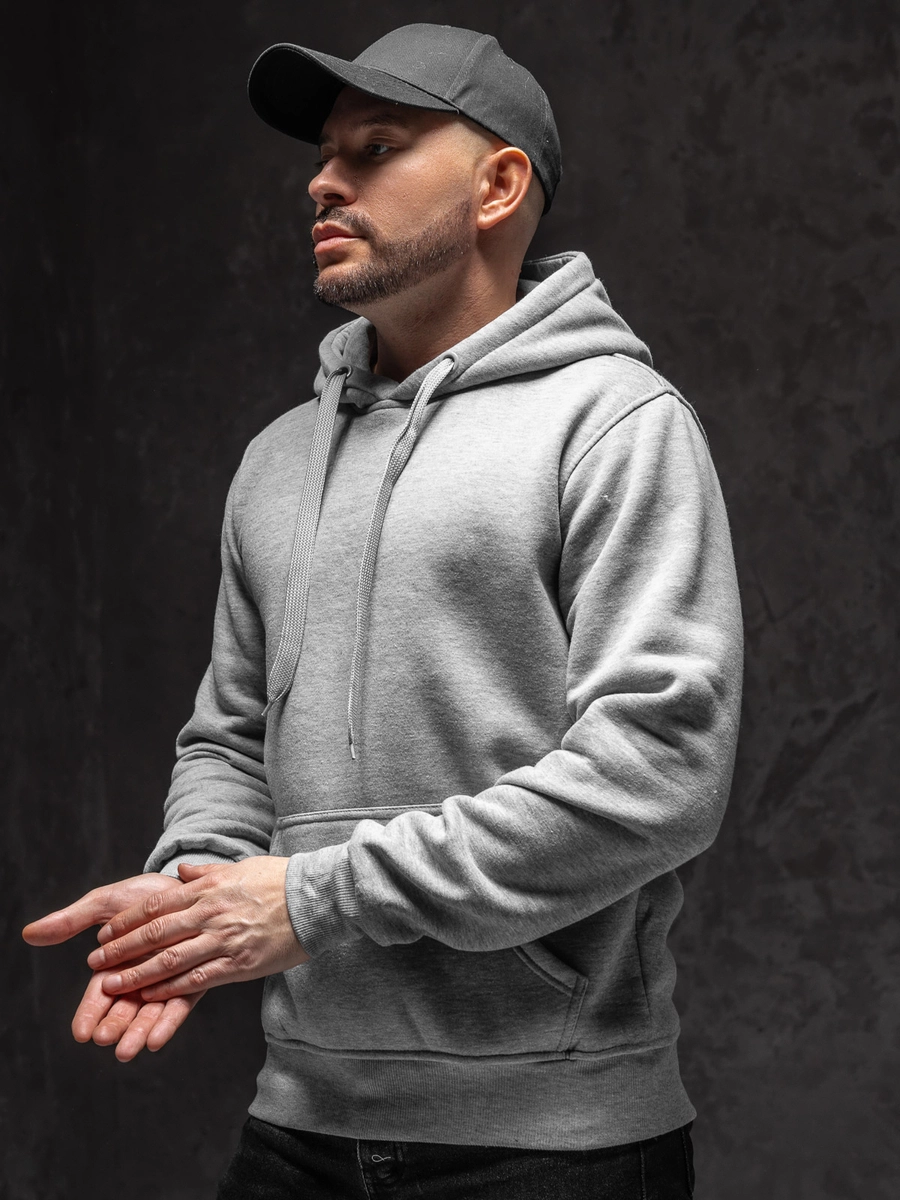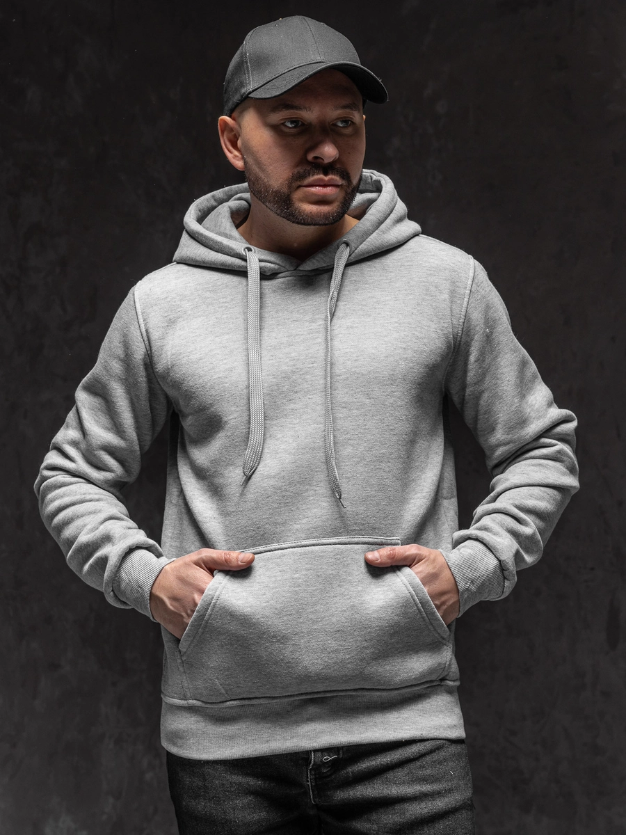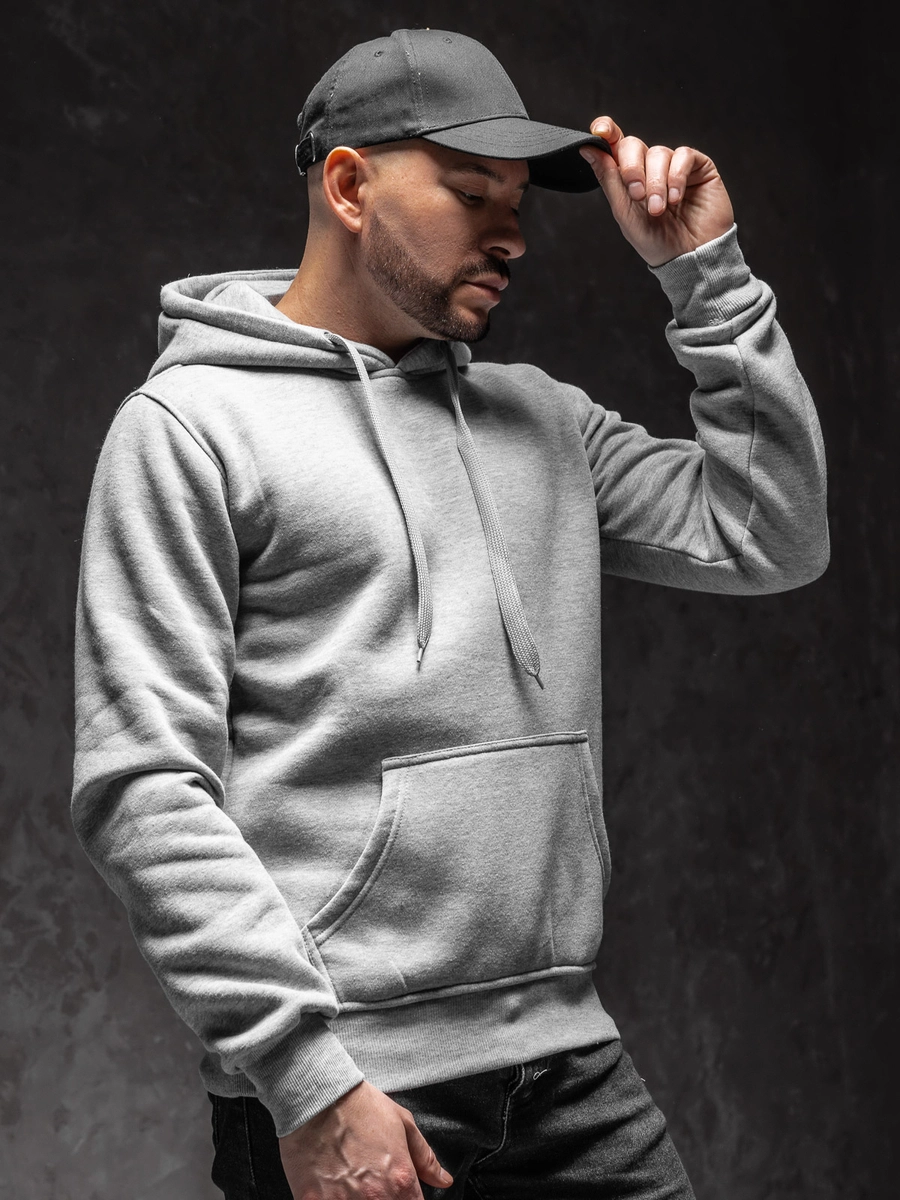 Fantastisk grå luvtröja för män 2009A1 från Bolf-kollektionen. Den har justerbar huva och en praktisk känguruficka framtill. Sportig look. Det finns en dragsko justerbar midja och botten. Den är tillverkad i ett mjukt skönt material i en enhetlig färg. Den här modellen kännetecknas av alla färger, den finns i mer än tjugo färgvarianter. Tack vare det är den lätt att matcha till många olika outfits. Passar bra hela året runt. Till många olika tillfällen. Shopping? Avslappning? Till och med för en spontan date passar den bra. Det här plagget passar varje dag, därför är den ett måste ha i varje mans garderob. Snygga färgglada färger. Den passar bra med jeans, cargobyxor eller joggers. Använd med ett par sweatpants eller en lättviktsjacka. Passar perfekt till träningspasset. Den här modellen väljs ofta av våra kunder. Kolla vad denna modell har fått för recensioner av influensers. Den lockar med bra utförande och ett bra pris jämfört med konkurrenterna. Denna sweatshirt har även sin motsvarighet bland dammodellerna, där den också slår rekord i populäritet.