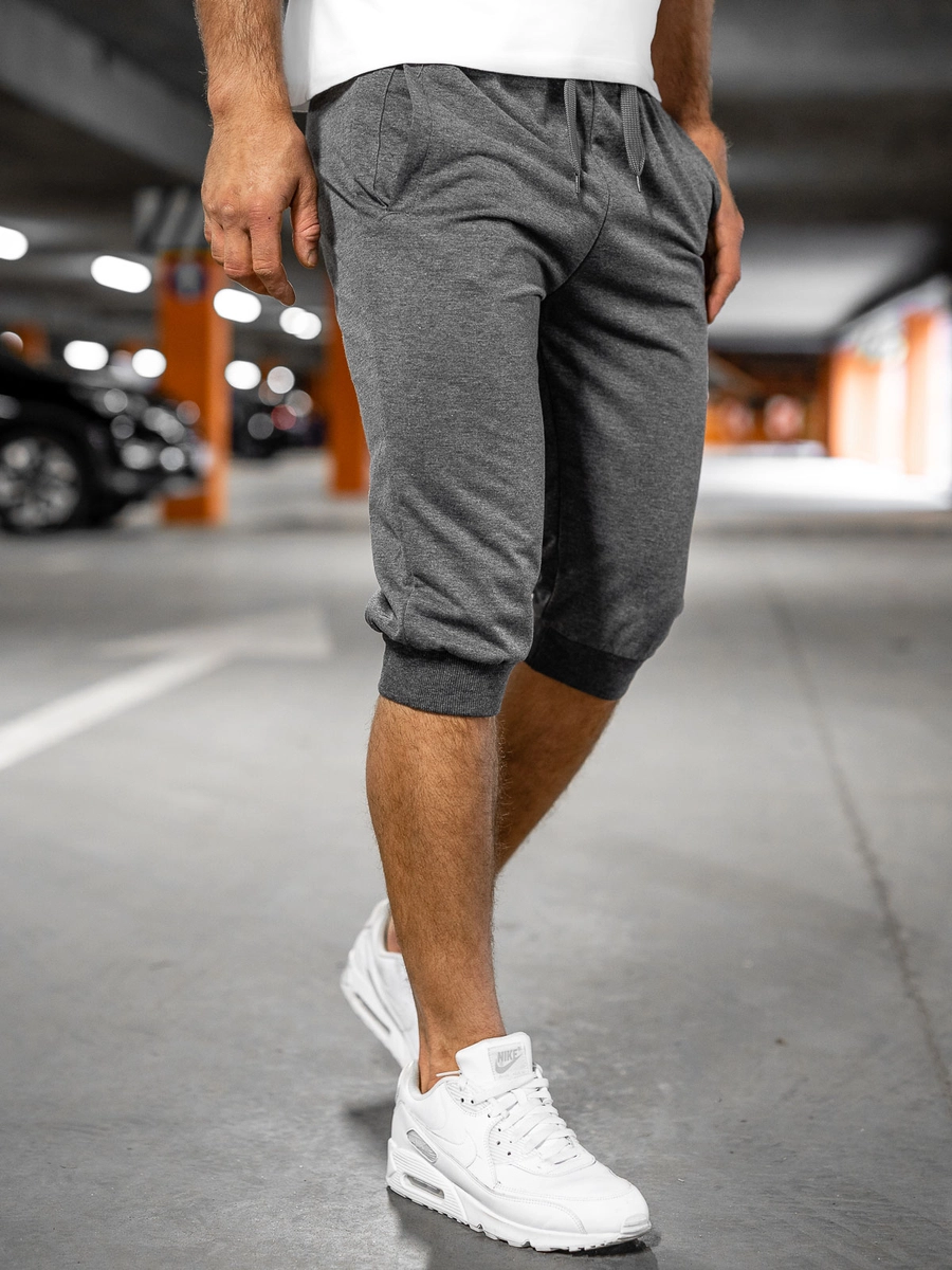 Fantastiska grafit baggy shorts för män K10002 från Bolf-kollektionen. De finns i 5 färger: röd, marinblå, svart och två nyanser av grått. Tack vare den justerbara midjan med kraftig dragsko och dragsko kan du passa dem perfekt till din figur. Detta är en av de mest fashionabla stilarna av shorts, som väldigt ofta väljs av influencers. Den stora komforten med att bära shortsen har uppnåtts tack vare ett mycket snyggt sweatshirttyg, tillverkat av 65% bomull och 35% polyester. Tack vare två sidfickor utan fäste får shortsen ett snyggt och praktiskt utseende. Shorts är perfekta när du ut på landet, träffa vännerna eller när du ska ta en promenad. Skapa ditt perfekta set med en T-shirt och en tröja med dragkedja. De kommer också att passa perfekt med en långärmad topp och en jeansjacka.