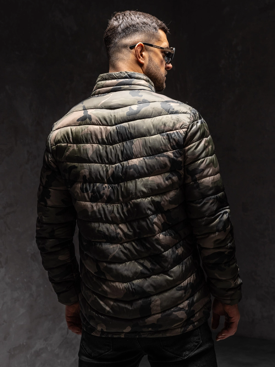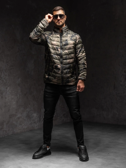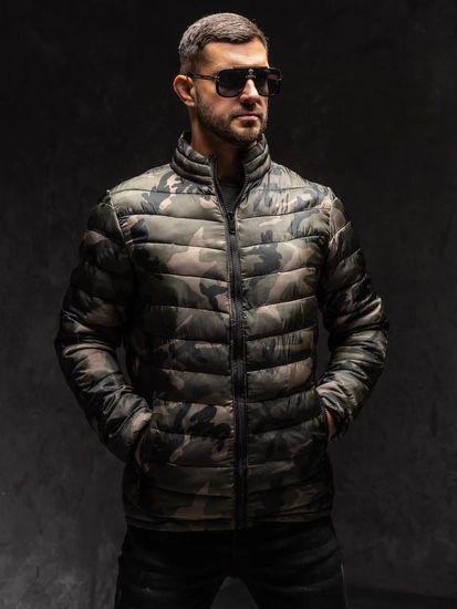 Perfekt grön vinterkamojacka för män SM80A1 från Bolf-kollektionen. Den stängs med dragkedja, har en ståkrage och ärmar avslutade med elastisk kant. Jackan har ett extremt moderiktigt camouflagemönster och vaddering över hela jackan ger den en unik, moderiktig karaktär. Den är tillverkad av 100% polyester. Den har praktiska fickor: två utvändiga med dragkedja och två invändiga utan stängning. Tack vare dess mångsidighet kan den lätt matchas med många olika stilar. Perfekt för en promenad, en träff med kompisarna eller för en shoppingtur. Jackan passar perfekt till ett par chinos och en långärmad top.
