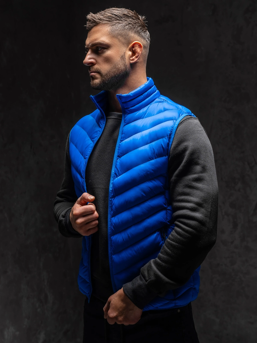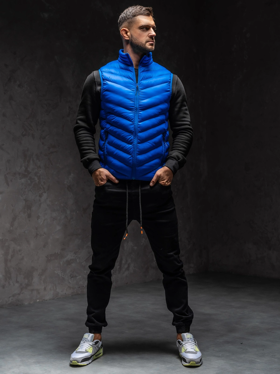 Snygg quiltad marinblå herrväst HDL88006A1 från Bolfs kollektion. En quiltad väst är ett måste i garderoben för varje fashionabel man. Det finns en dragkedja och en stå-upp krage. Två ytterfickor ger en praktisk karaktär. Elastisk mudd nertill och i armhålor. Västen fungerar bra under weekendturer, promenader eller jogging. Den är tillverkad av 100% nylon. Skapa en perfekt matchning med joggingbyxor eller träningsbyxor.
