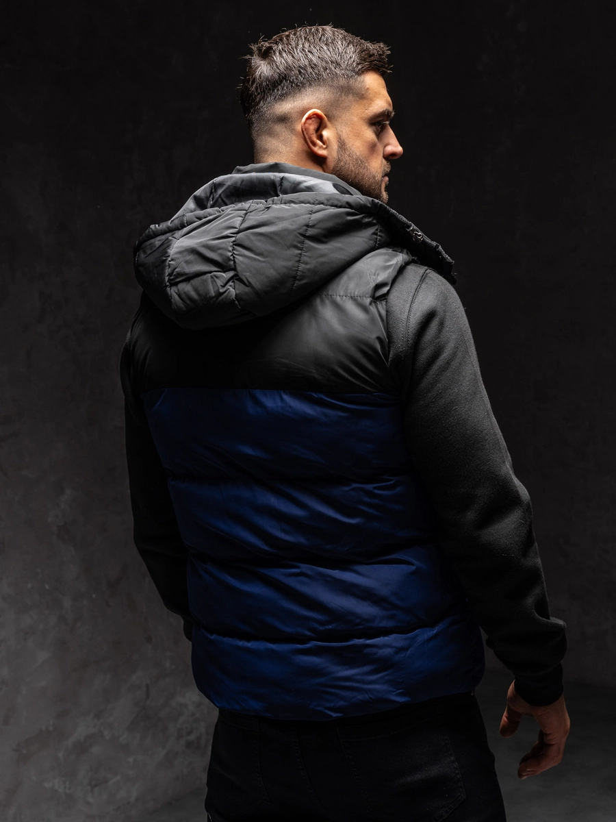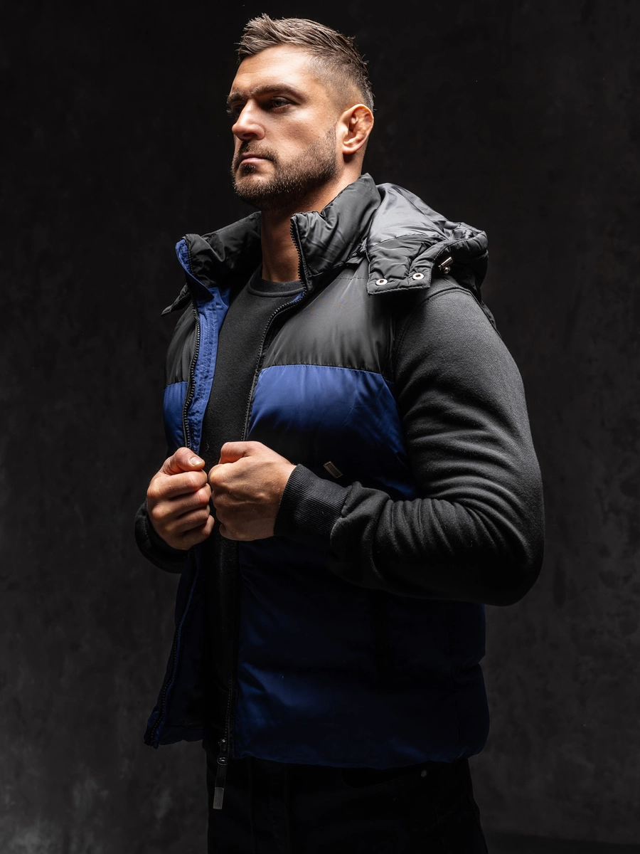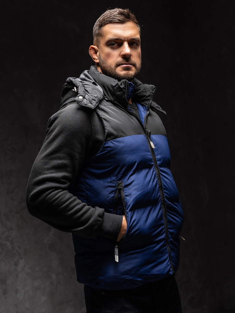 Snygg marinblå quiltad herrväst med huva 1189A1 från Bolfs kollektion. Västen har en avtagbar huva som skyddar dig från att bli blöt under regniga dagar. Stängs med en vanlig dragkedja. Den har en stå-upp krage. En stor fördel med produkten är att den har tre fickor med dragkedjor. Två rymliga fickor som kan skydda dina händer mot kyla. Innerfickan passar perfekt för telefon, nycklar eller andra små saker. Huvan kan regleras. Det gör att den skyddar utmärkt mot kyla och regn. Västen är för alla som gillar en sportig stil. Den är perfekt vid opålitligt väder. Den håller dig varm under en långpromenad i staden eller ute i naturen eller på joggingturen. Du kommer känna dig bekväm med den under vandringar eller långa krävande löpturer. Flexibiliteten i materialet gör att den är perfekt att använda vid dåligt väder och krävande fysisk avktivitet. Du kommer se elegant och snygg ut i den under en helgtripp med dina vänner. Den finns i flera olika färger vilket gör att den lätt matchas med olika kläder. Den kan kombineras med jeans, joggers och en långärmad top. Passar även med en skjorta eller en tröja. Den är ett måste i varje mans garderob, tack vare mångsidigheten kan den användas vid många olika tillfällen, både sociala och sportiga. Västen är tillverkad av 100 % polyester, vilket garanterar bekvämlighet varje dag. Tack vare att den är så prisvärd är det den perfekta födelsedagspresenten eller julklappen. Den kommer tillfredsställa den mest kräsna mannen.