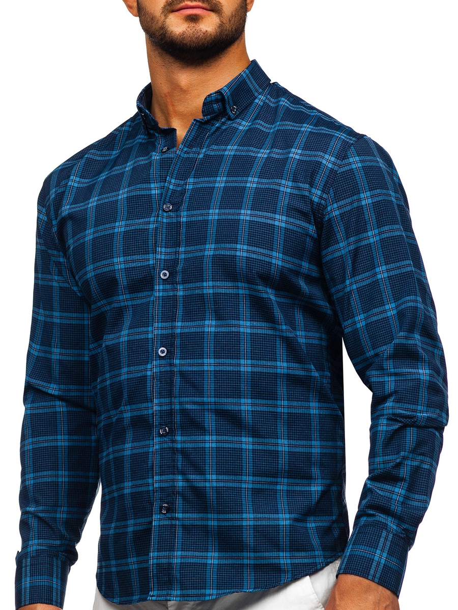 Feedback från kunder Herr Rutig Långärmad Skjorta Marinblå Bolf 22749