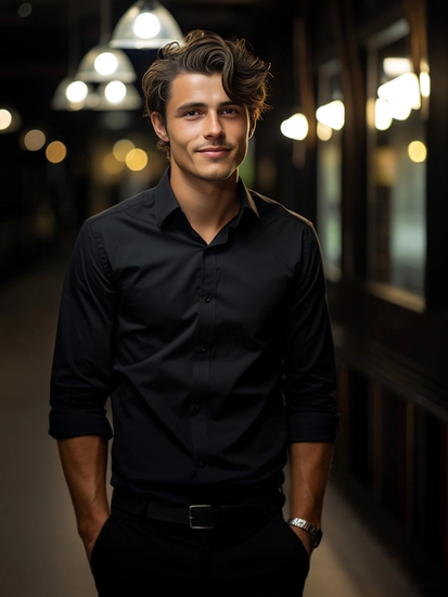 Elegant svart långärmad herrskjorta 1703A2 från Bolf-kollektionen. Enfärgade herrskjortor rekommenderas till de som gillar minimalism och klassisk elegans i modet. Den är bekväm och har bra passform. Defenitivt ett måste i den medvetna affärsmannens garderob. Designen är rak och passar till olika stilar. Skjortan är av slim fit-modell, har knappar och är praktiskt rundad nertill. Ärmarns avslutas med en bred, justerbar manschett som stängs med en knapp. Den har en klassisk krage med korta slag.