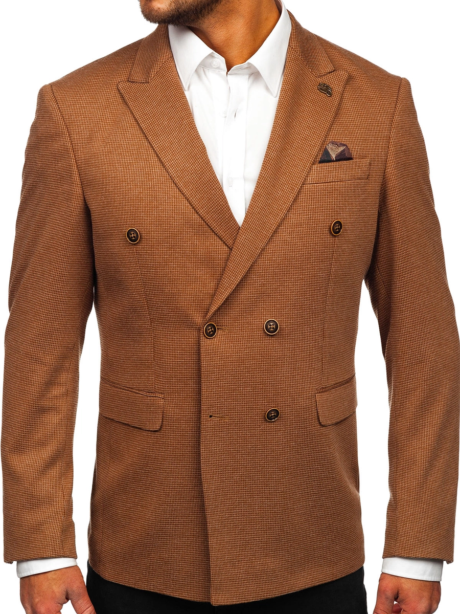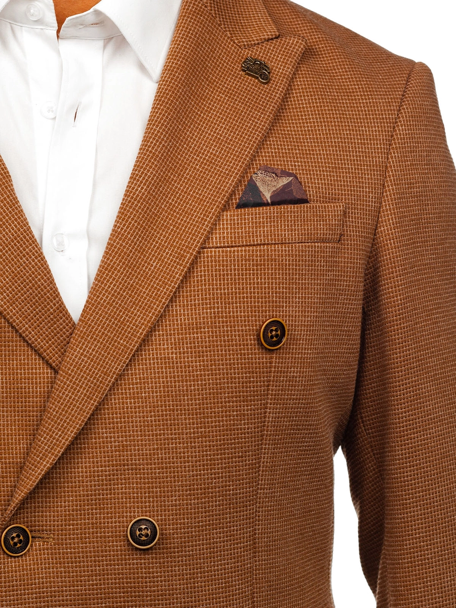 Feedback från kunder Herr Dubbelbröstad Casual Kavaj Brun Bolf 002