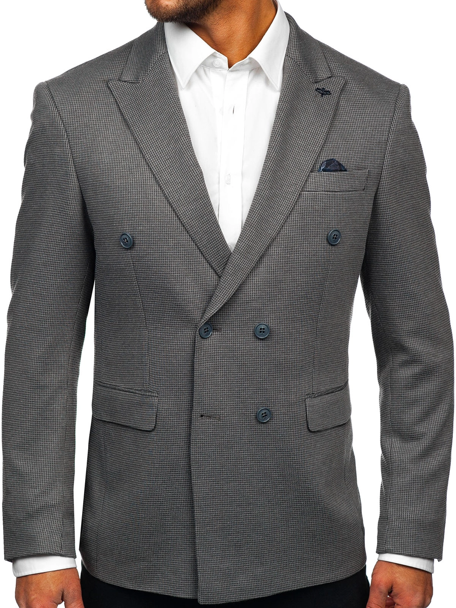 Feedback från kunder Herr Dubbelbröstad Casual Kavaj Grå Bolf 004