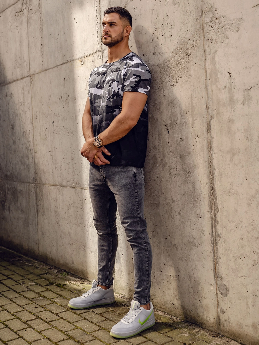Fantastisk grå T-shirt med militärtryck för män S808A1 från Bolf-kollektionen. Den här T-shirten har ett modernt camomönster och en praktisk rund halsringning. T-shirten är stiliserad som en hombre. Den består av 65% bomull och 35% polyester, vilket gör den stretchig och passar figuren perfekt. Ärmarna och nederdelen är trimmade med en tråd som perfekt matchar T-shirtens färger. T-shirten är perfekt för vardagsbruk, en modern look och ett djärvt motiv får dig att sticka ut från andra män. Hombremotivet för den väldigt intressant och ger T-shirten karaktär. Den passar perfekt för en sväng på stan eller en joggingtur. Den är bekväm och lös i passformen och passar bra till många olika tillfällen. Karakteristiska färger gör den väldigt iögonfallande. Militärstilen får dig att sticka ut från mängden. T-shirten är perfekt för vardagliga tillfällen, som att gå ut på stan, promenera eller jogga runt i staden eller parken. Det flexibla materialet gör att den är bekväm på löpturen eller vid andra fysiska aktiviteter. T-shirten finns i flera färger. Du kan välja färg som passar din stil, en som sticker ut eller en lite mer diskret. En T-shirt måste finnas i varje garderob, denna är originell och adderar karaktär. Passar jättebra med jeans eller ett par joggare. De passar också bra med cargobyxor vilka kompletterar militärstilen. Matcha den med ett par sweatpants. Ett brett utbud av färger och storlekar gör T-shirten till ett måste för varje man som inte är rädd för experiment med mode och djärv styling. Tack vare att den är så prisvärd är det den perfekta födelsedagspresenten eller julklappen. Denna produkt kommer addera färg och unikhet till din garderob.