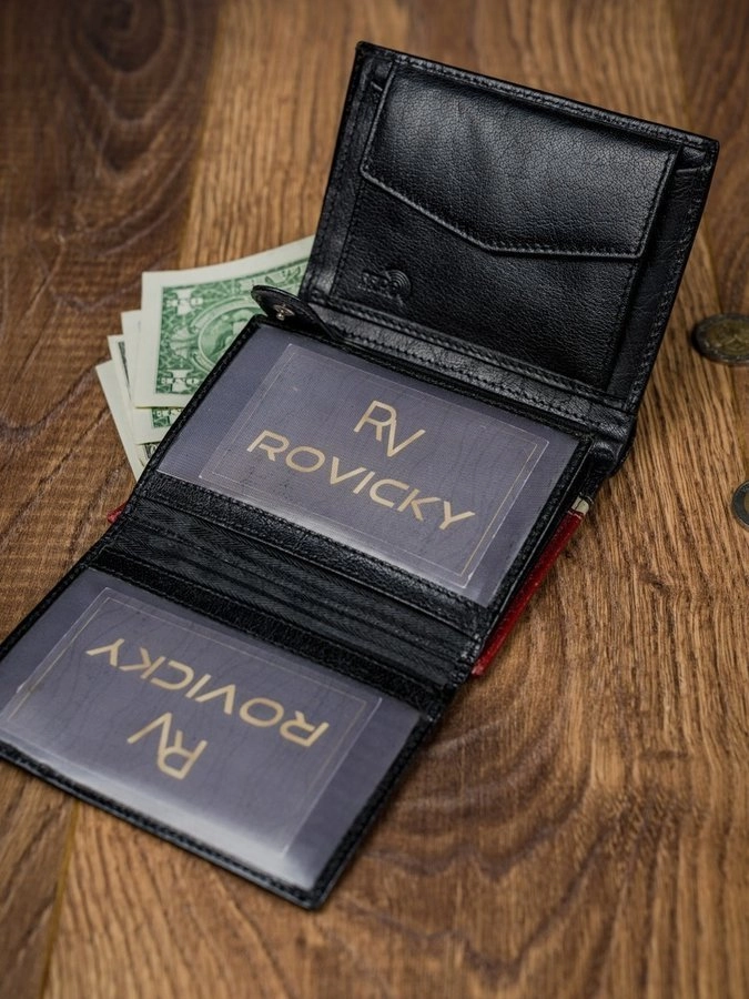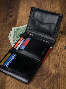 - Utrustad med RFID STOP-teknik som skyddar plånboken mot tjuvar med hjälp av en kortläsare;