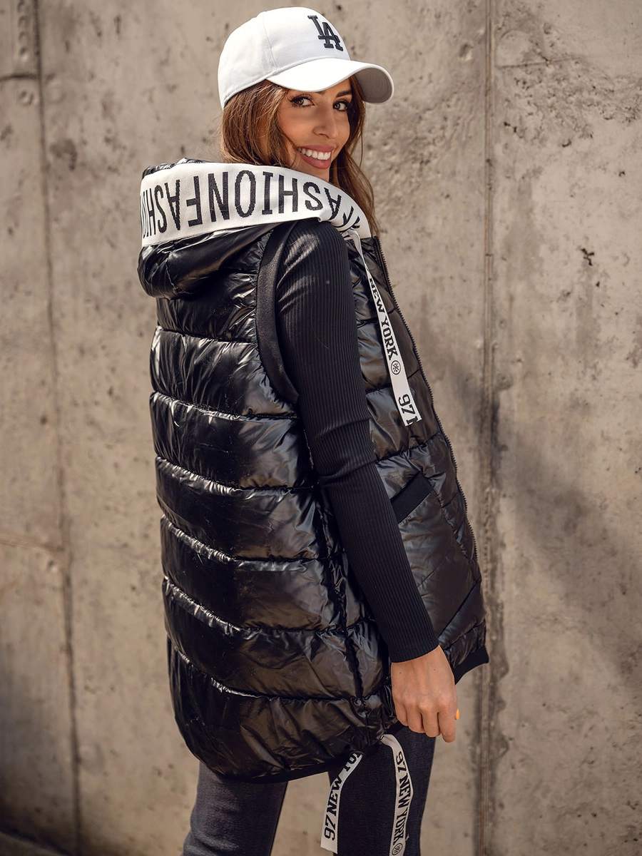 Feedback från kunder Dam Lång Quiltad Väst med huva Svart Bolf 16M9115A