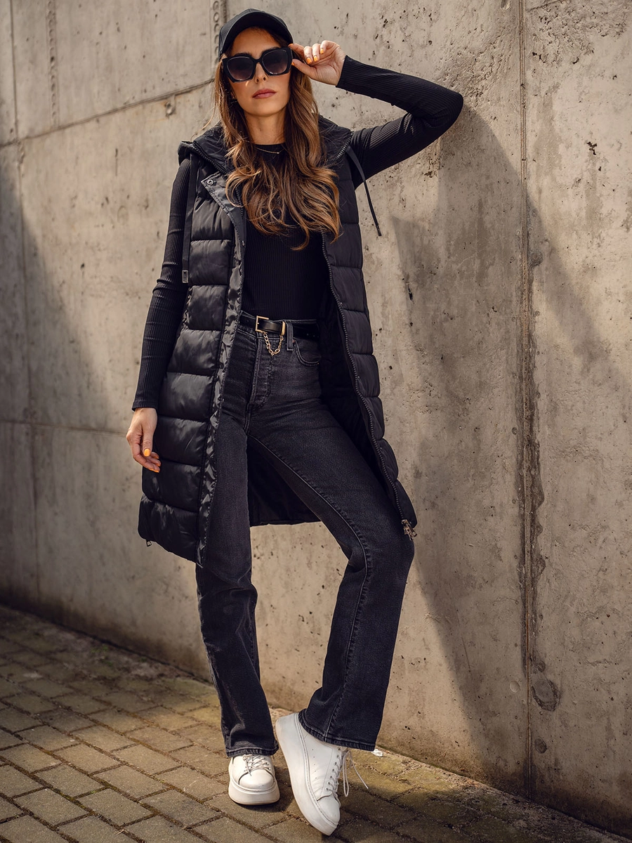 Feedback från kunder Dam Lång Quiltad Väst med huva Svart Bolf MY6315