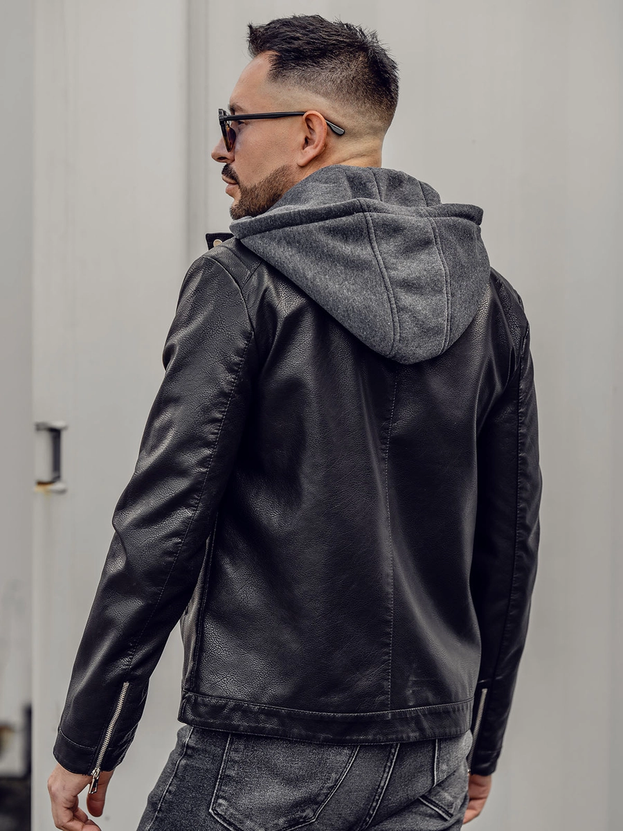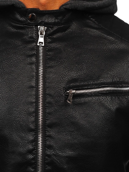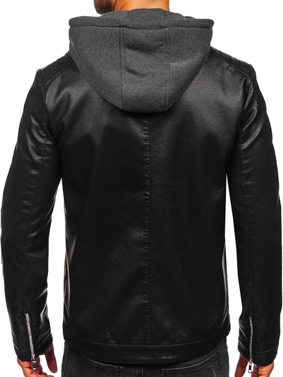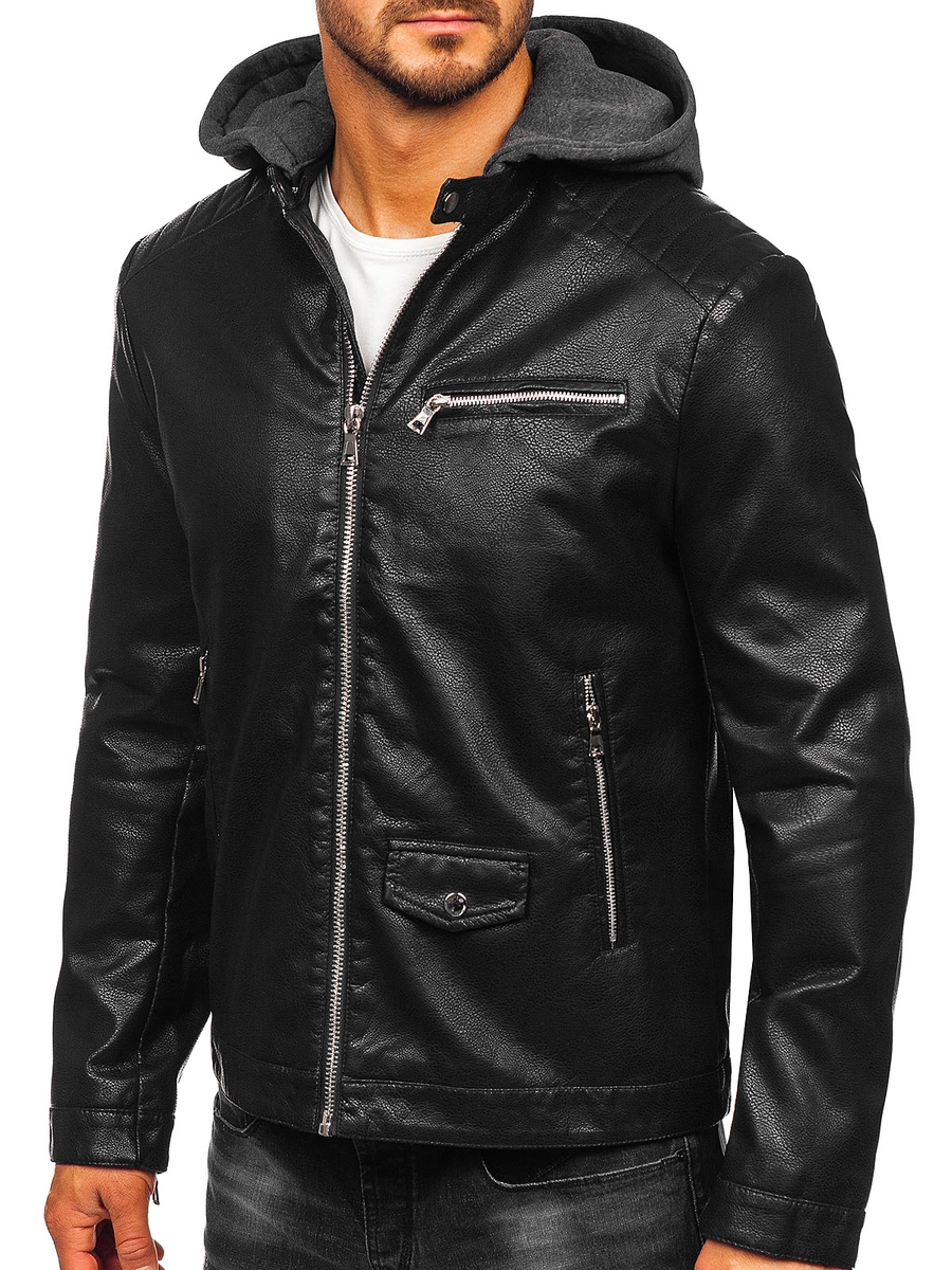 Feedback från kunder Herr Bikerjacka i skinn med huva Svart Bolf 11Z8022