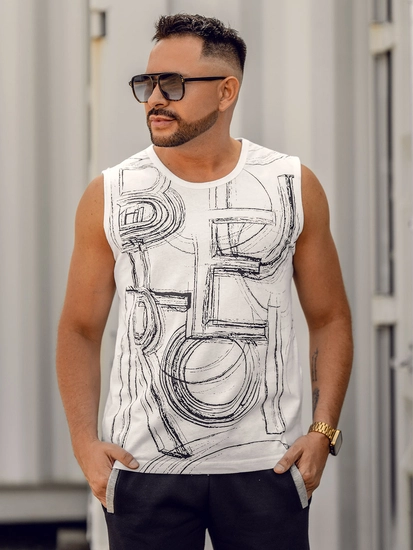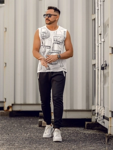 Det vittryckta linne 14818A från Bolf-kollektionen är ett förslag för män som letar efter en T-shirt med exponerade axlar, men med lite mindre utskärningar än vanliga träningslinnen. T-shirten är avslutad med estetisk passpoal vid halsringning och ärmar. Den har ett tryck som liknar bokstäver skissade med en penna. Perfekt för vardagliga, avslappnade kombinationer med jeans eller cargobyxor. För varma sommardagar kommer den perfekt att matcha shorts. På kallare kvällar kan du ta på dig en tröja med dragkedja och ge din look en mer sportig karaktär.
