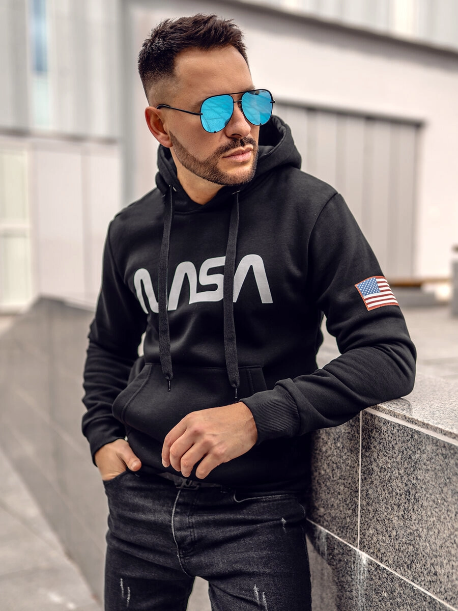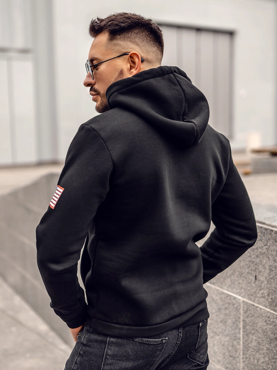 Perfekt svart känguruhuvtröja med tryck för män 14600A från Bolf-kollektionen. Den kombinerar sportig estetik med en modern stil, perfekt för en mängd olika tillfällen. Tillverkad av mjukt och slitstarkt material, garanterar komfort och rörelsefrihet. Huvan ger extra skydd mot vind och kyla, och det attraktiva trycket ger sweatshirten individualitet och ett unikt utseende. Tack vare den universella färgen är det lätt att kombinera den med andra klädesplagg. Den kommer att passa för vardags-, vardaglig eller sportstyling. Kombinera den med jeans eller cargobyxor.