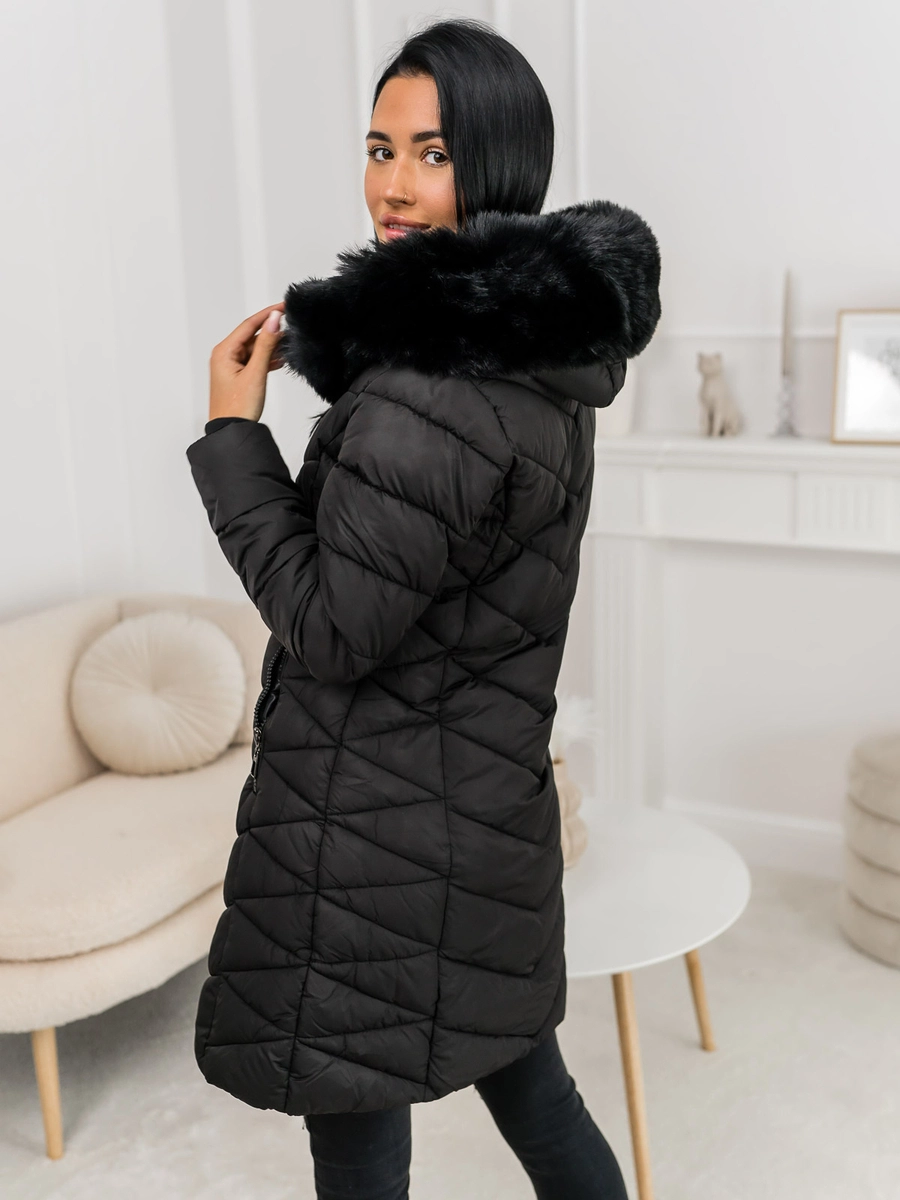 Feedback från kunder Dam Lång Quiltad Vinterjacka med huva Svart Bolf 16M9195