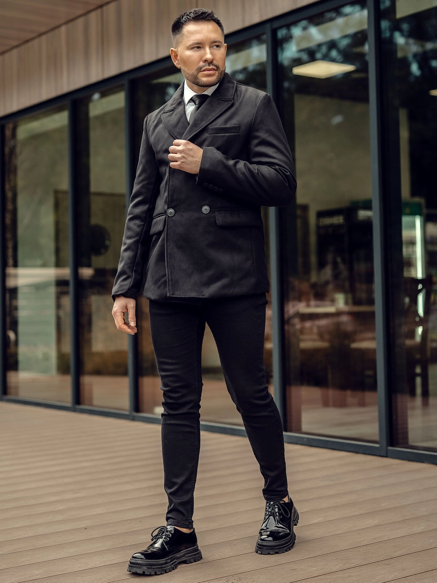 Den svarta dubbelknäppta vinterkappan för män 79B3A från Bolf-kollektionen kommer perfekt att passa in i garderoben hos en elegant och fashionabel man. Det är en klassisk dubbelknäppt kappa som knäpps med knappar. Den har en omvänd krage och ett varmt foder. Dess praktiska funktion förstärks av två yttre fickor täckta med lock, en bröstficka och en innerficka. Rocken är tillverkad i material av hög kvalitet. Den är väldigt originell men har samtidigt en tidlös elegans. Det ser bra ut både med knäppning och uppknäppt. Den kommer att passa perfekt med chinos och en skjorta för en mer formell look. Kombinera den med jeans och en polotröja för att skapa en look perfekt för vardagsbruk.