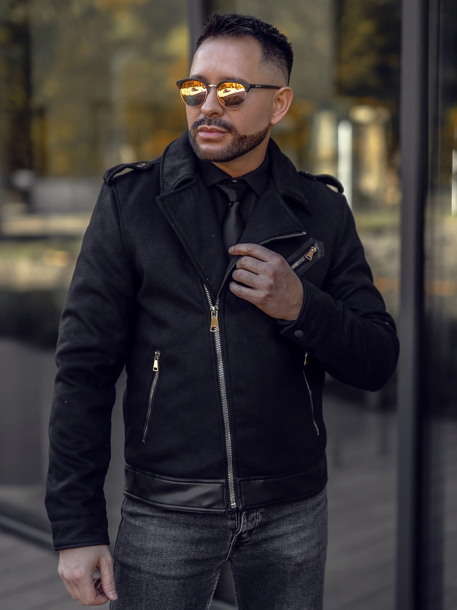 Iögonfallande svart herr skinnjacka i bikermodell 79M15501A från Bolf kollektionen. Stängs med dragkedja och har en omvänd krage. Epauletter på axlarna ger den en unik karaktär. Den har tre utvändiga fickor med dragkedja och en invändig utan stängning. Ärmarna är justerbara med tryckknappar och den har en rak mudd för att passa kroppen perfekt. Jackans casual-stil tillåter dig att skapa många olika intressanta stilar med den i. Perfekt under lite kallare dagar. När du ska träffa dina vänner, använd jackan med en sweatshirt och jeans. Genom att kombinera den med en tröja och joggers, har du en perfekt stil lite kyligare dagar.