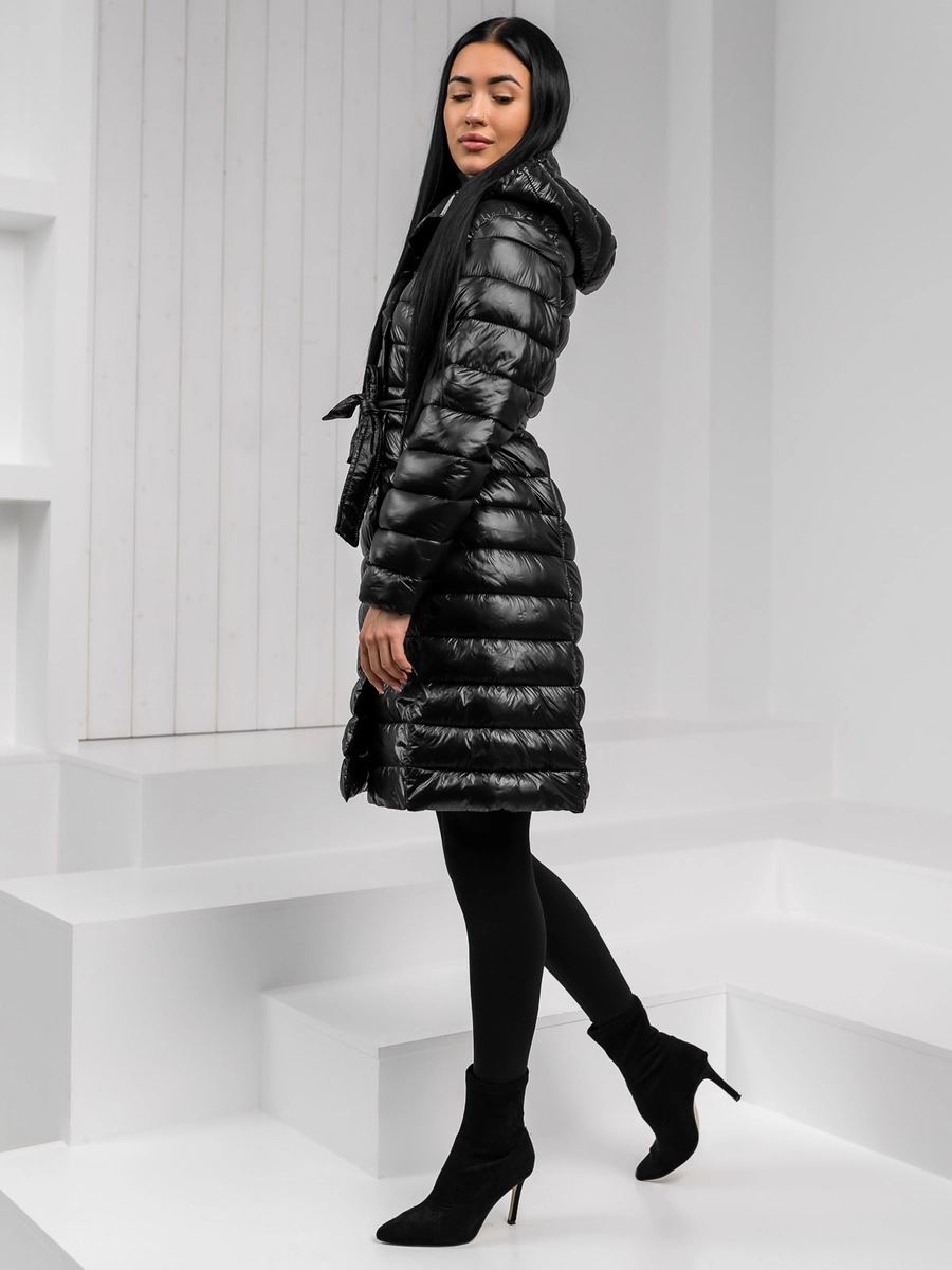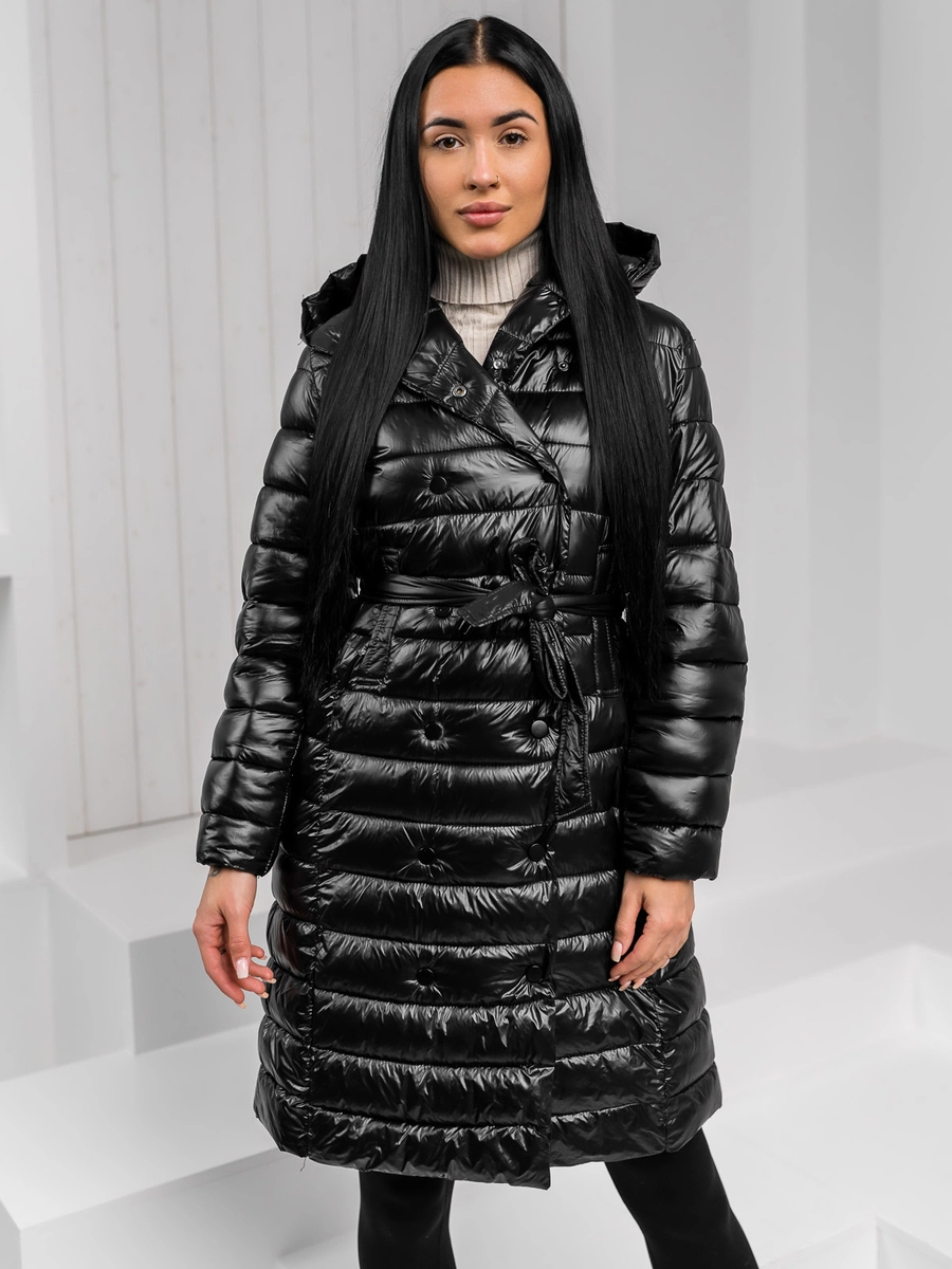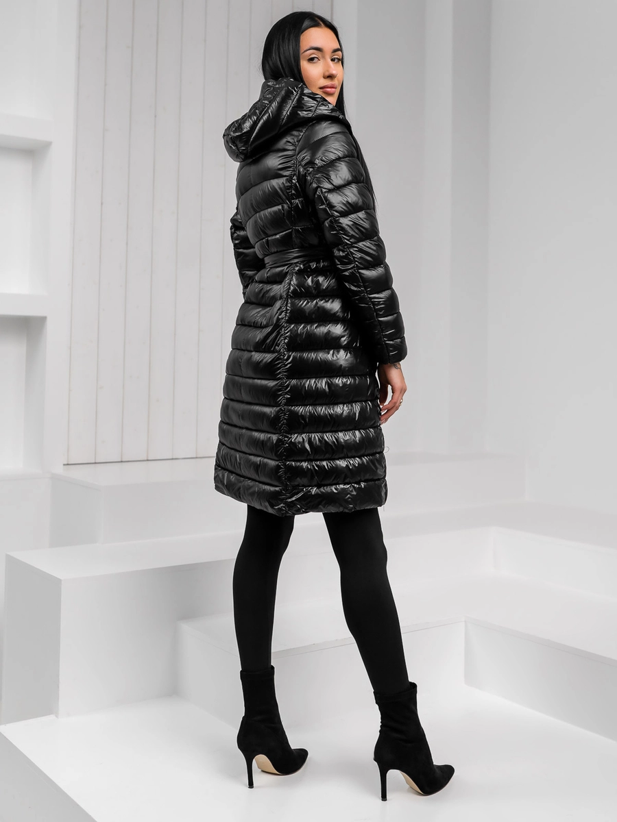 Feedback från kunder Dam Lång Quiltad Vinterjacka med huva Svart Bolf 5M3159A1